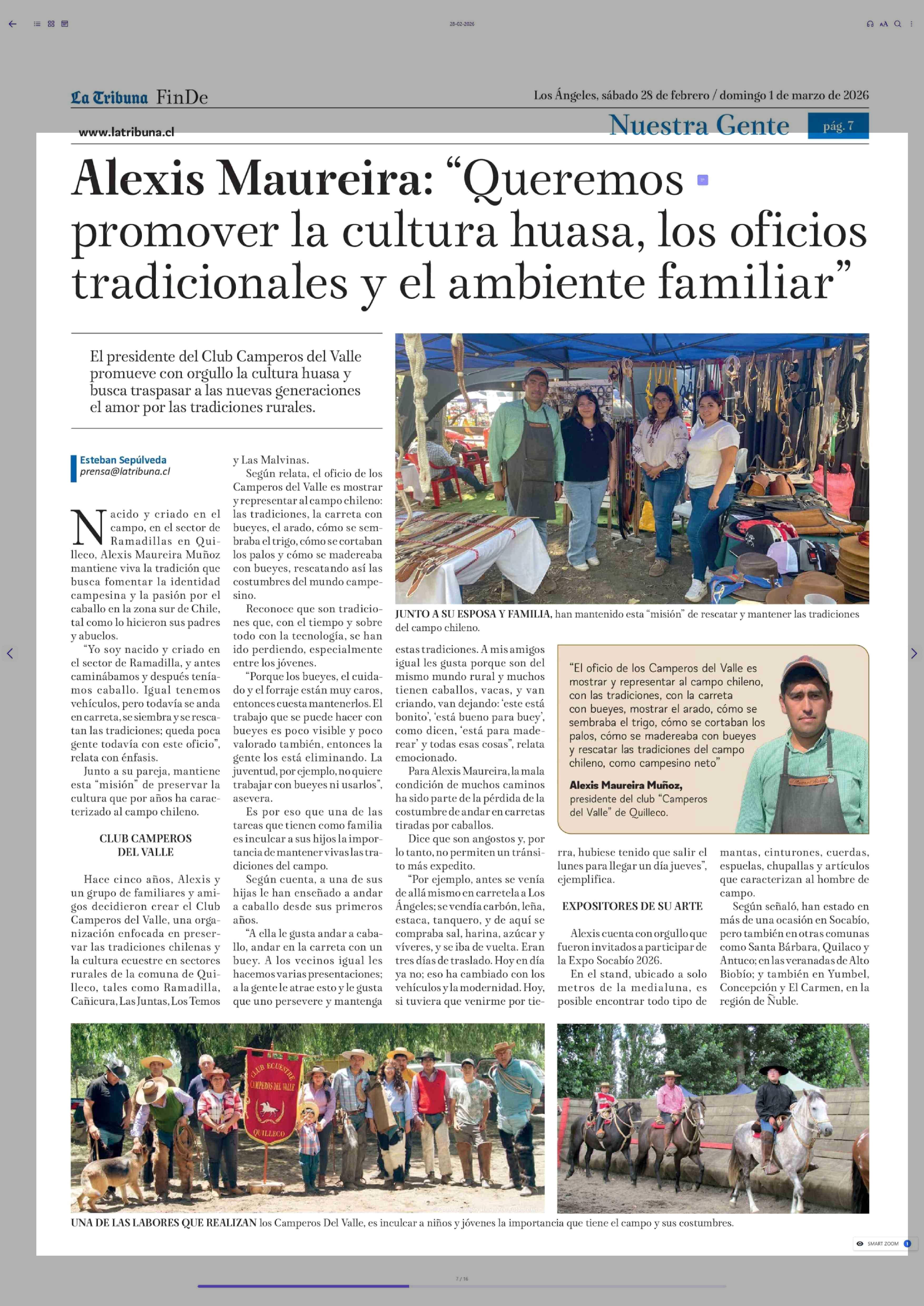 Título: Alexis Maureira: “Queremos promover la cultura huasa, los oficios tradicionales y el ambiente familiar