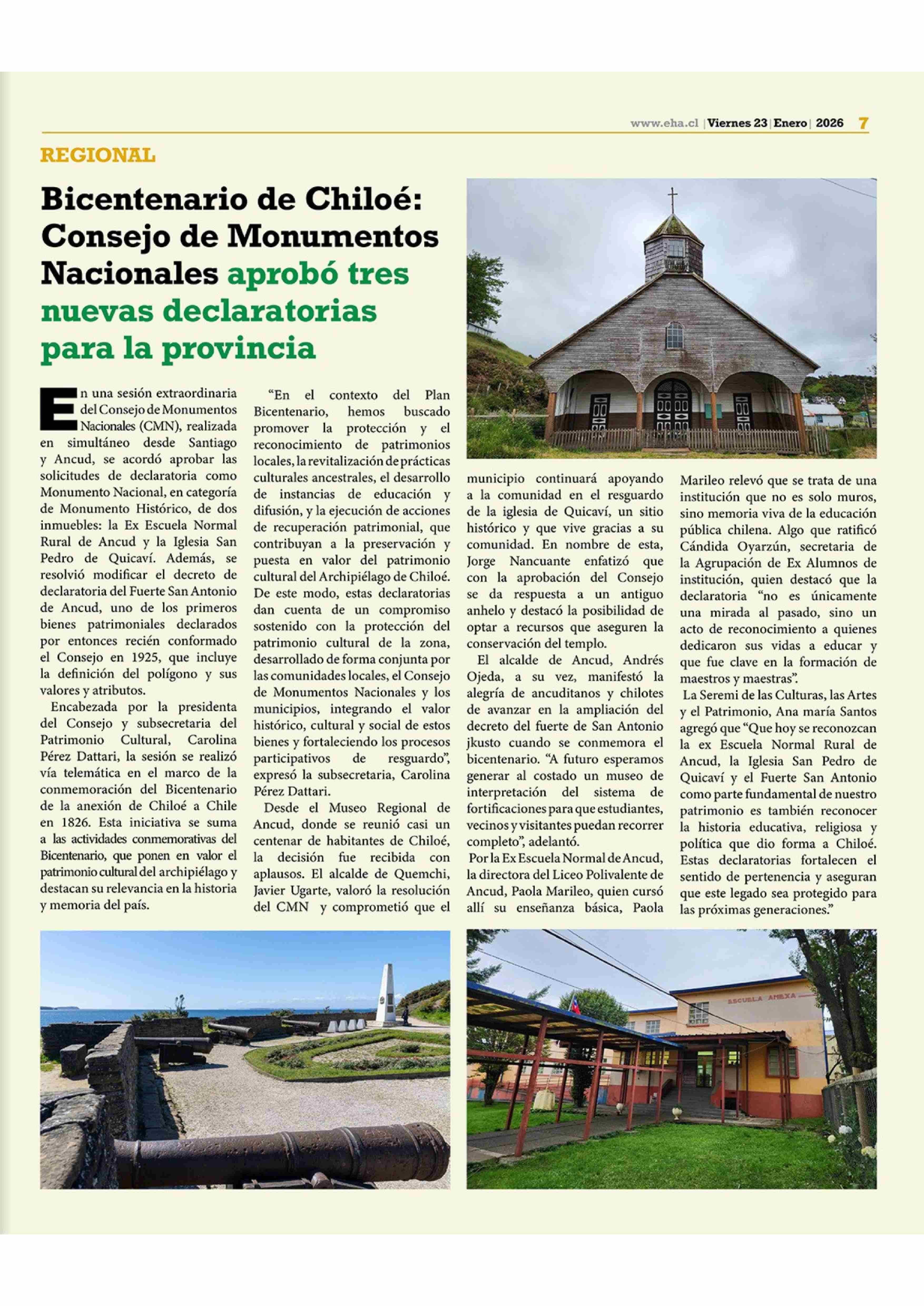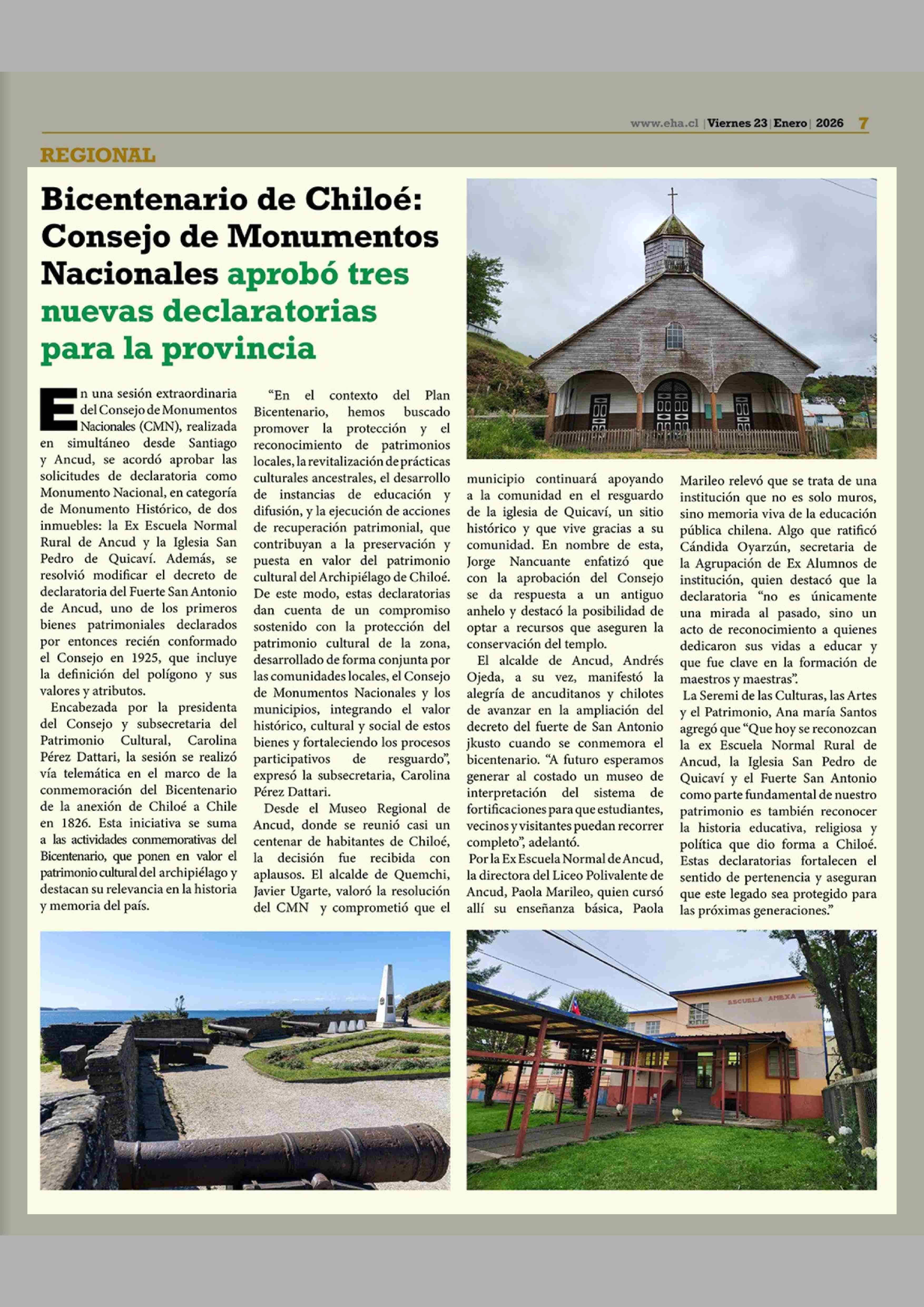 Bicentenario de Chiloé: Consejo de Monumentos Nacionales aprobó tres nuevas declaratorias para la provincia 23-01-2026 El Heraldo Austral |