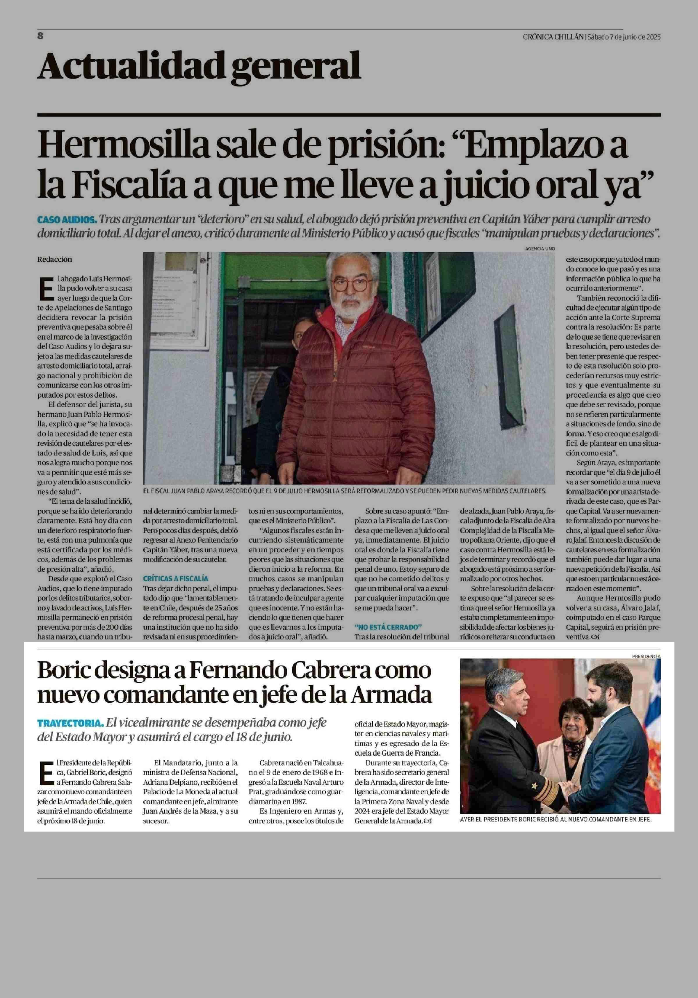 Boric designa a Fernando Cabrera como nuevo comandante en jefe de la Armada 07-06-2025 Crónica de Chillán |