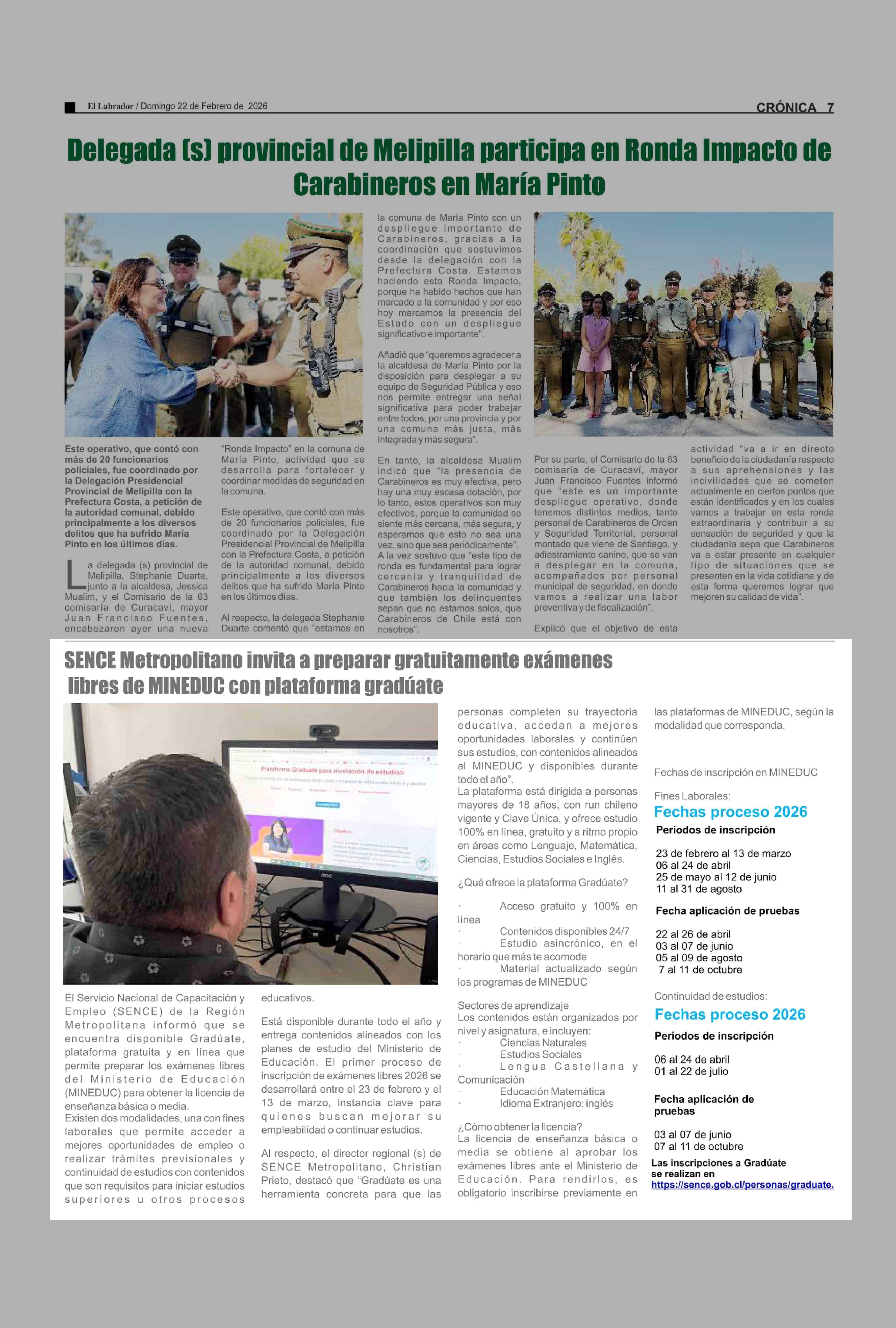 SENCE Metropolitano invita a preparar gratuitamente exámenes libres de MINEDUC con plataforma gradúate 22-02-2026 El Labrador |
