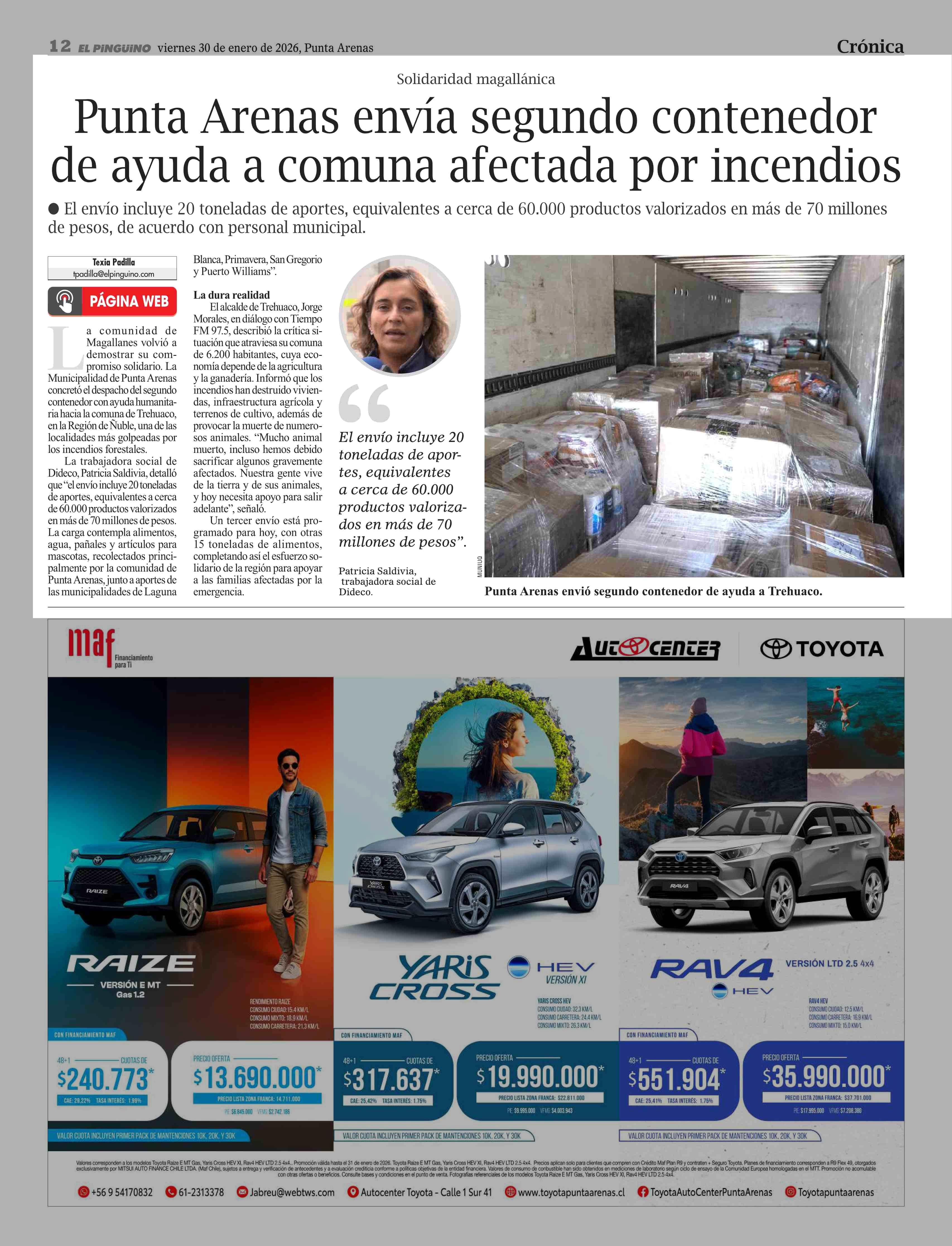 Título: Punta Arenas envía segundo contenedor de ayuda a comuna afectada por incendios