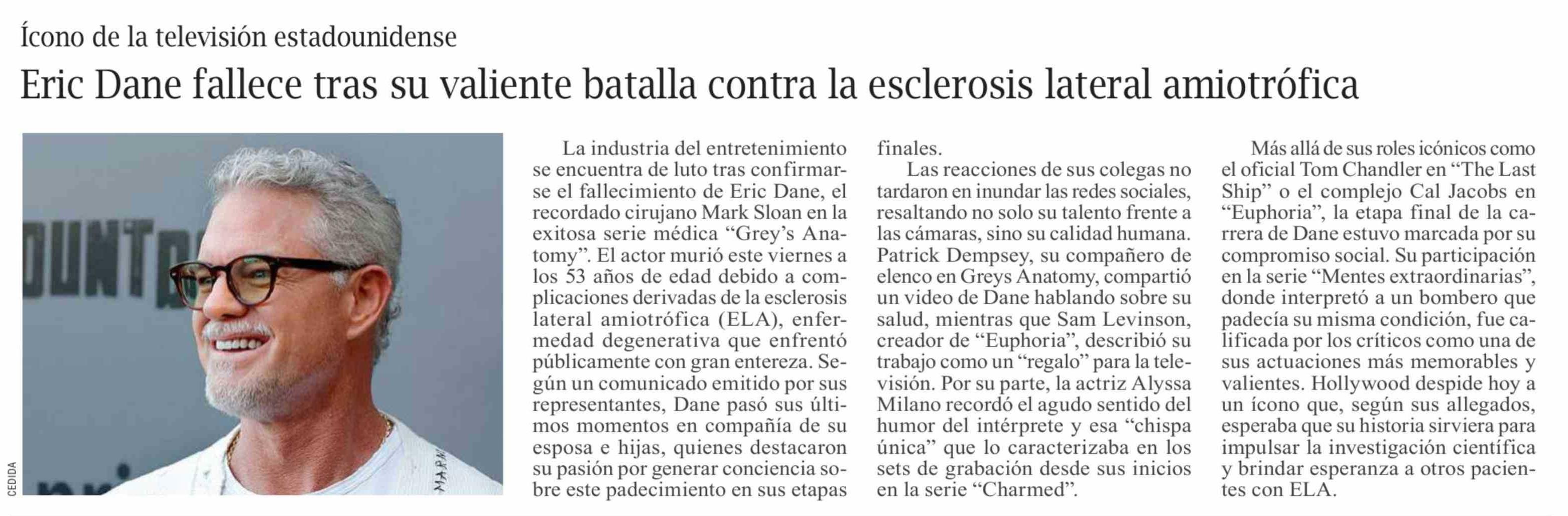 | Título: | Eric Dane fallece tras su valiente batalla contra la esclerosis lateral amiotrófica |