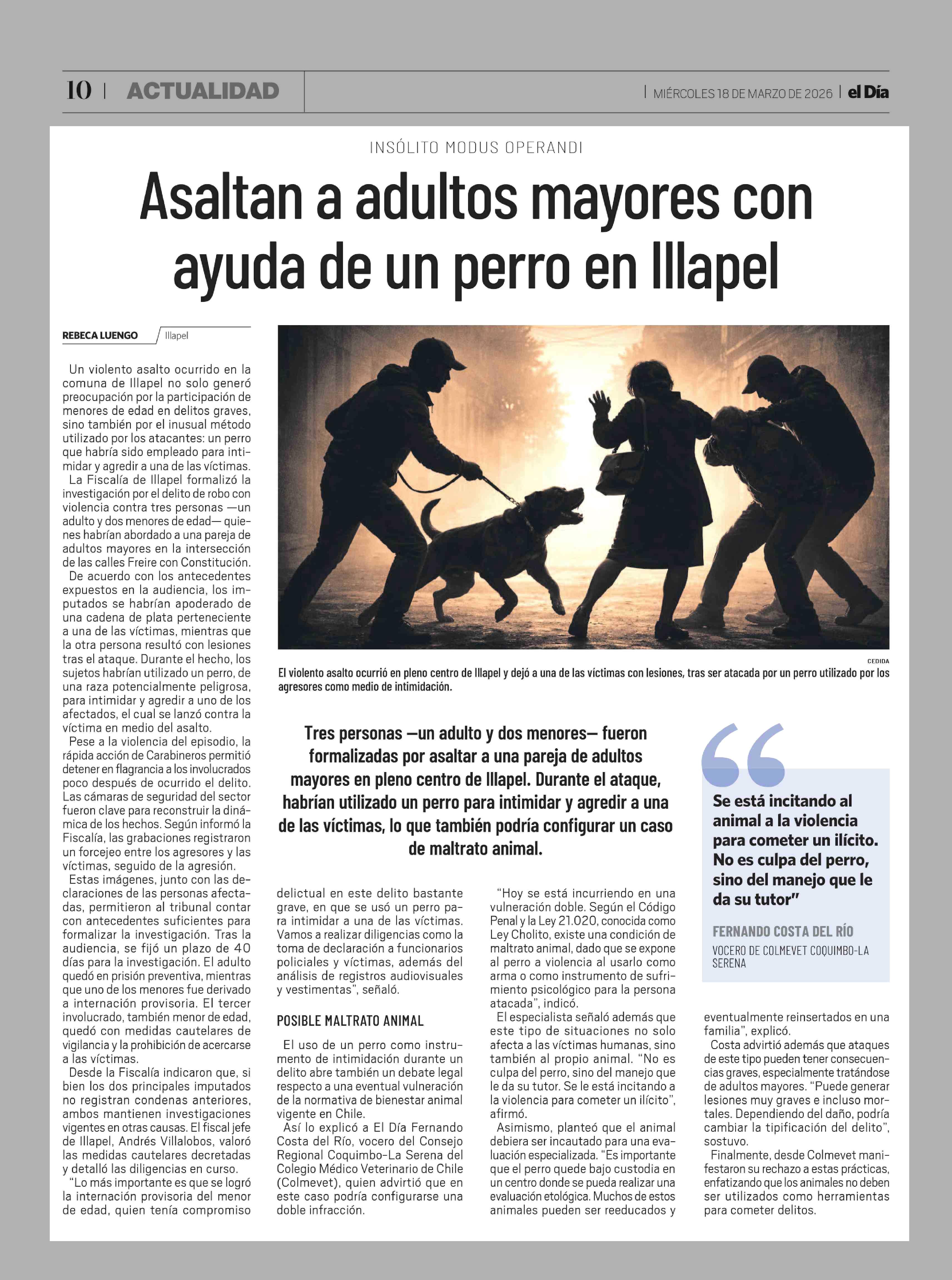 Asaltan a adultos mayores con ayuda de un perro en Illapel 18-03-2026 El Día |