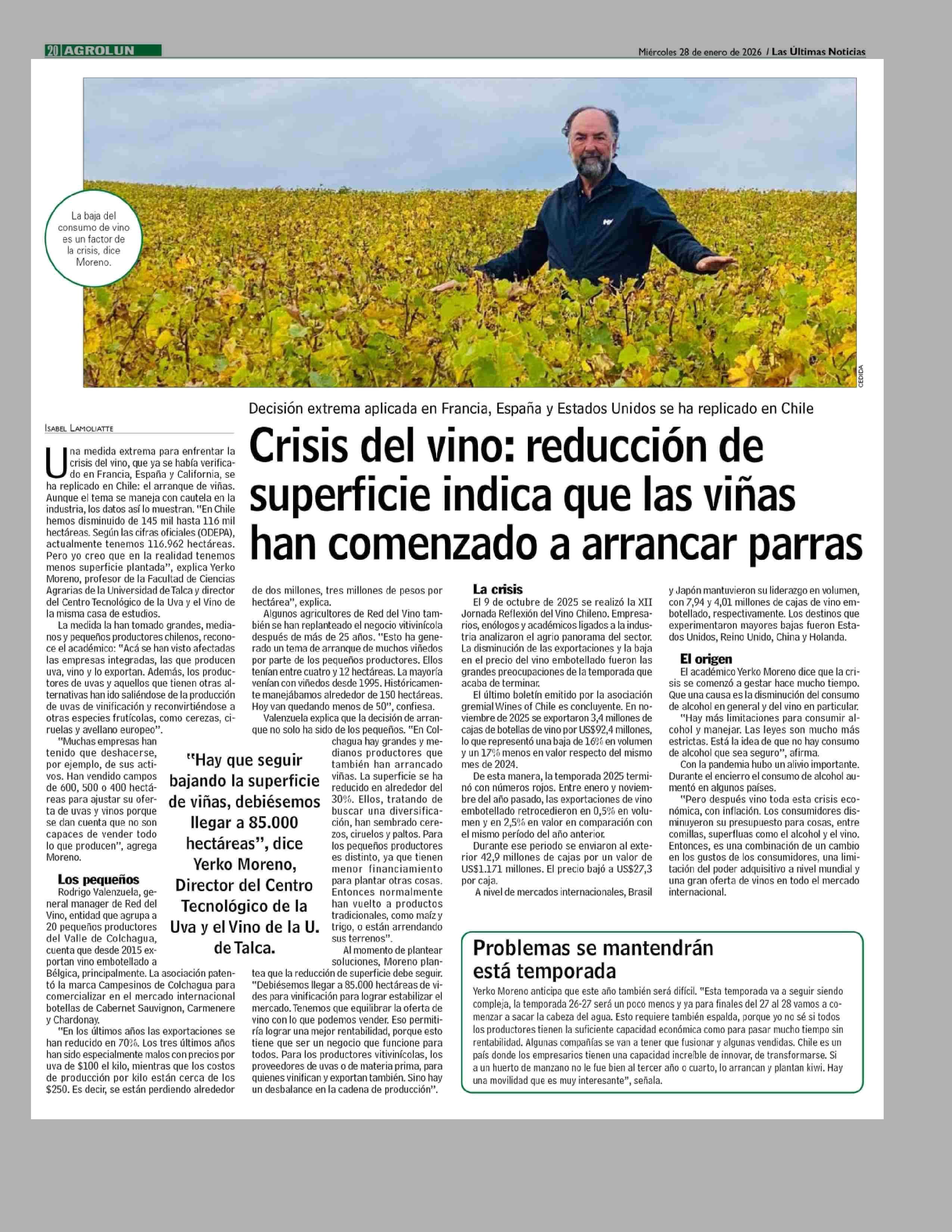 Título: Crisis del vino: reducción de superficie indica que las viñas han comenzado a arrancar parras