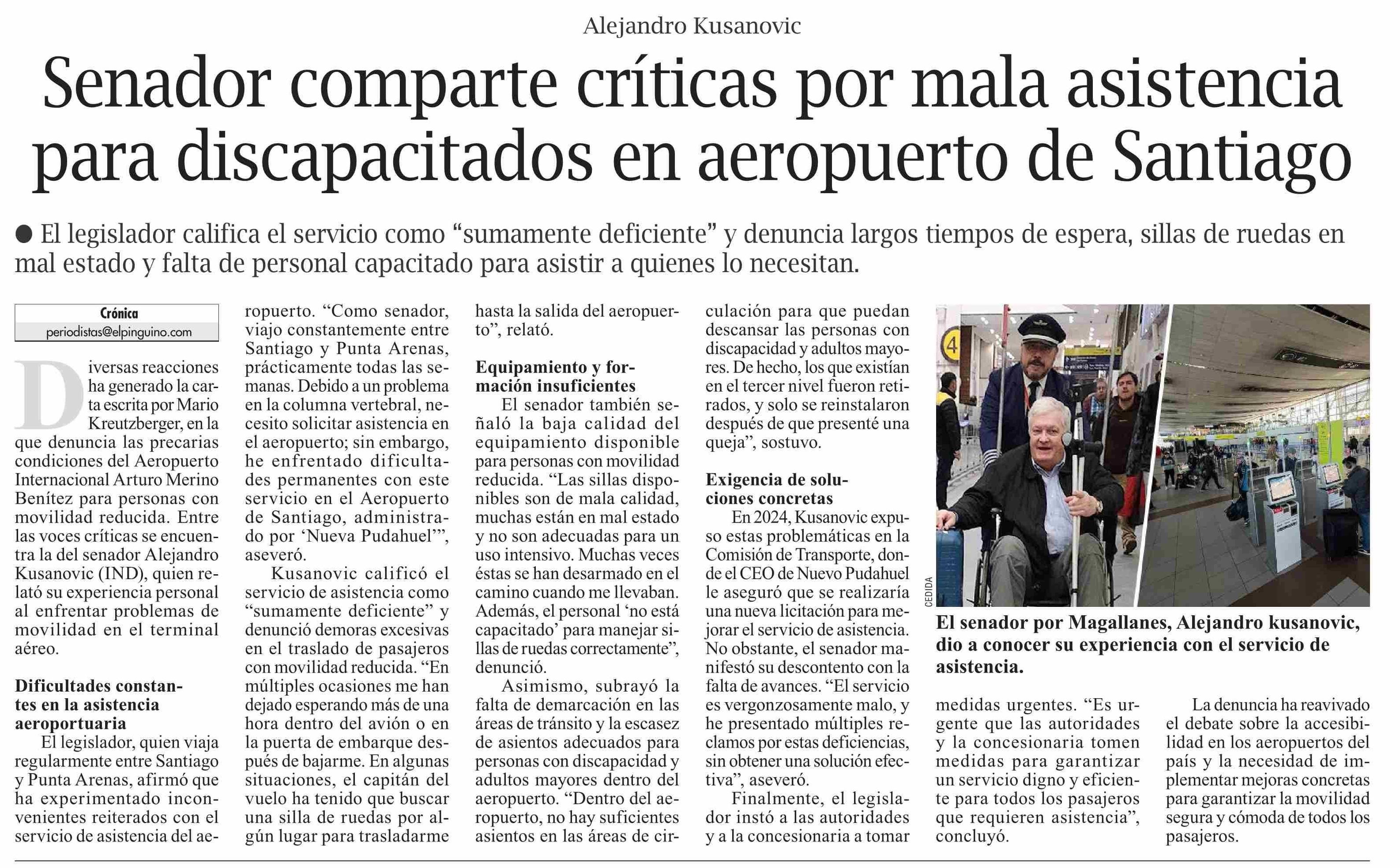Título: Senador comparte críticas por mala asistencia para discapacitados en aeropuerto de Santiago