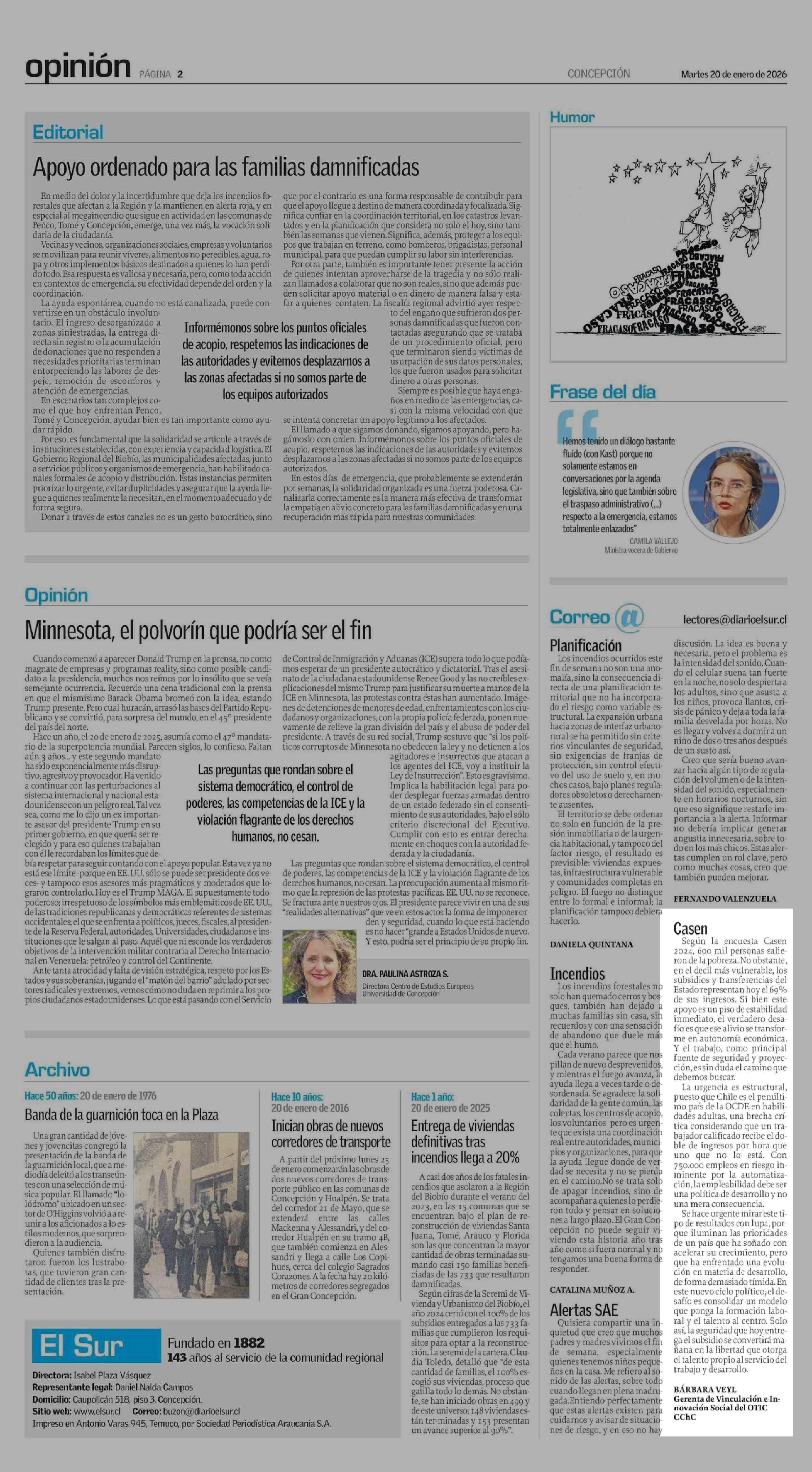 Fecha: 20-01-2026 Sector: Cartas Región: Región del Bío-Bío
