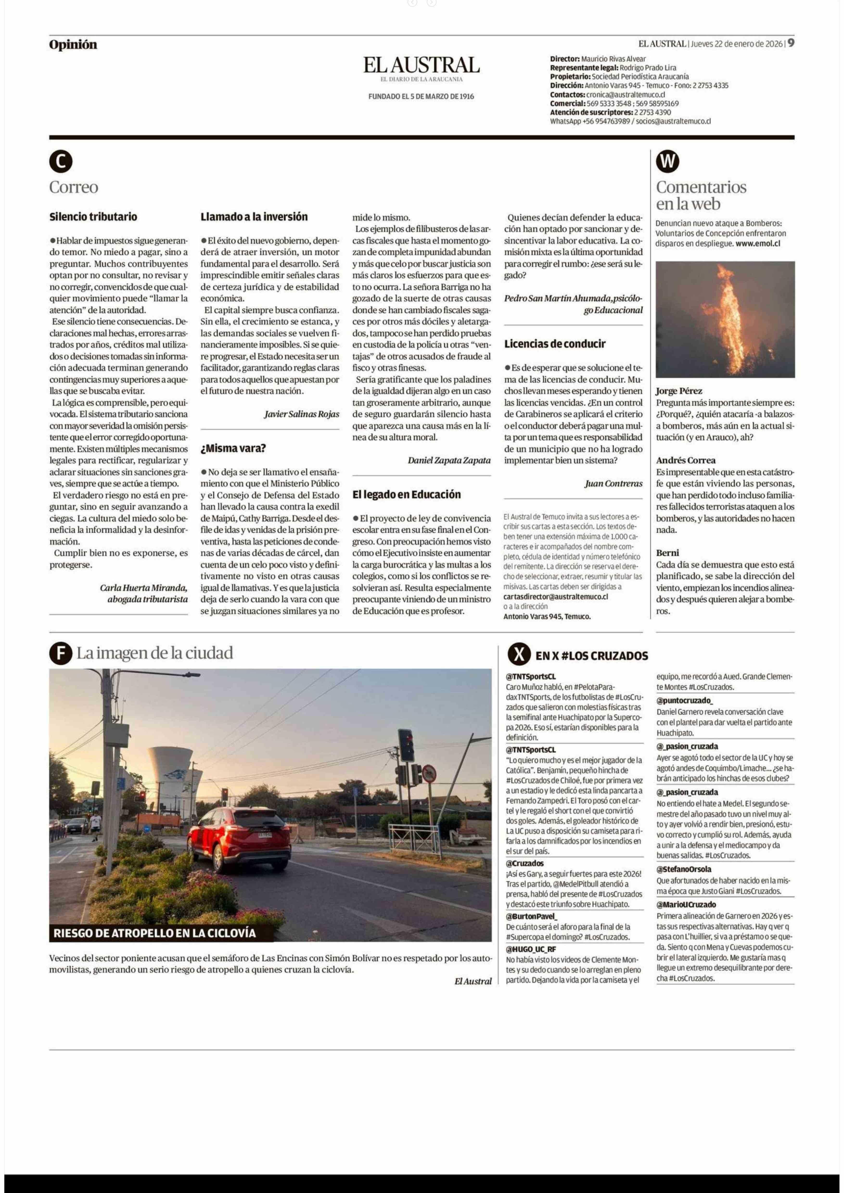 Cartas: El legado en Educación 22-01-2026 El Austral de la Araucanía |