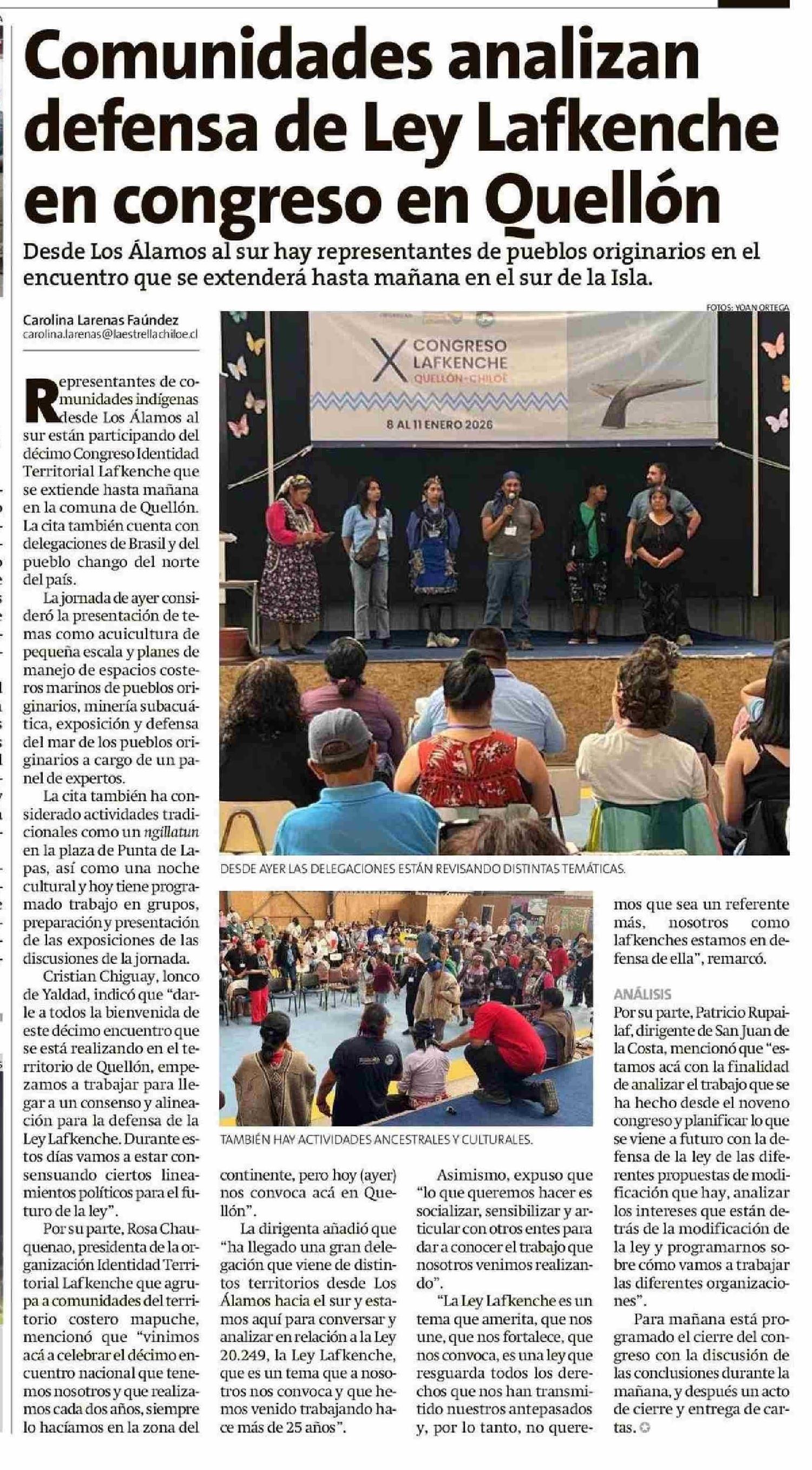 Comunidades analizan defensa de Ley Lafkenche en congreso en Quellón 10-01-2026 La Estrella de Chiloé |