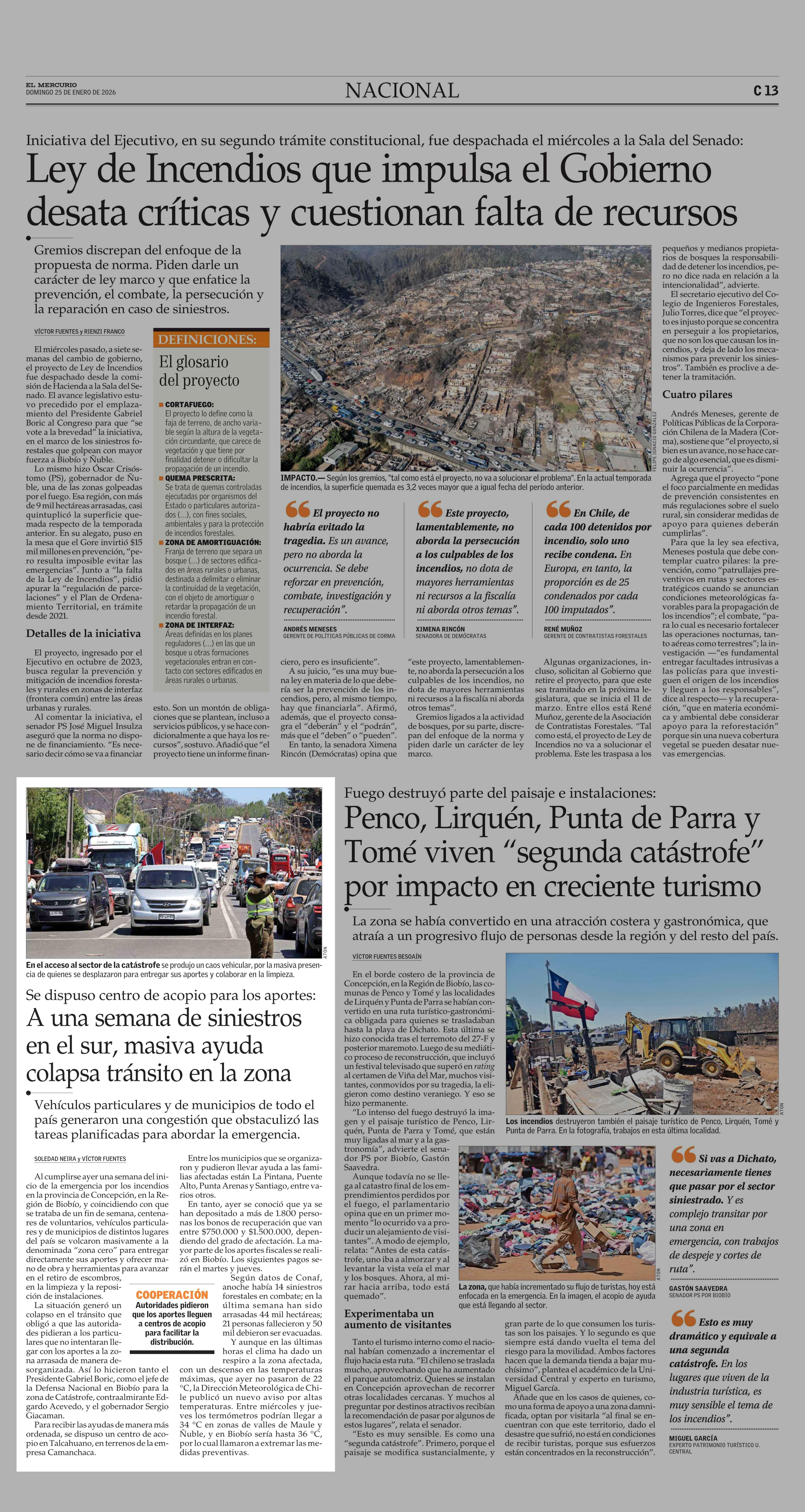 A una semana de siniestros en el sur, masiva ayuda colapsa tránsito en la zona 25-01-2026 El Mercurio |