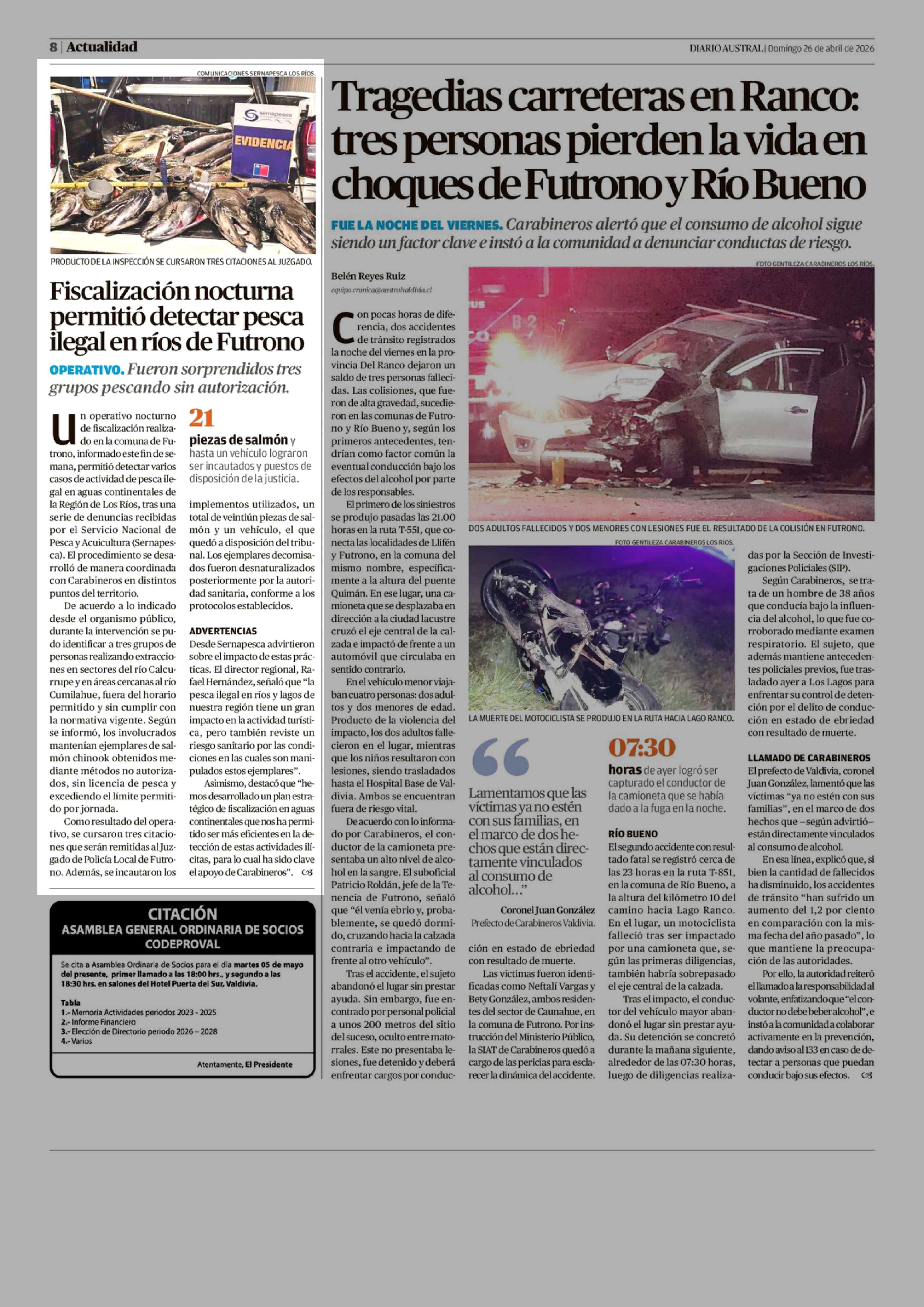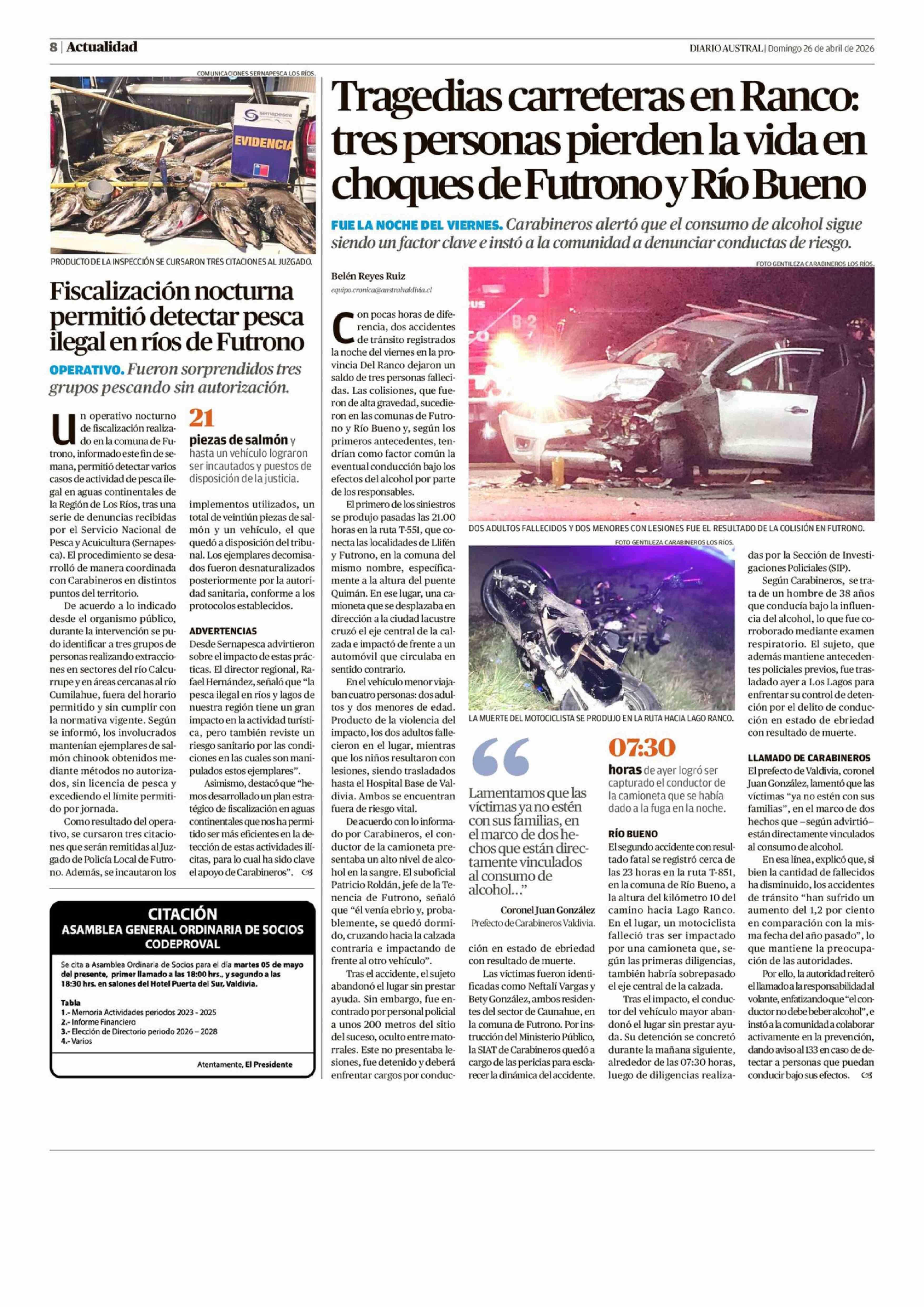 | Fecha: | 26-04-2026 | Sector: | Noticia general | Región: | Región de Los Ríos |