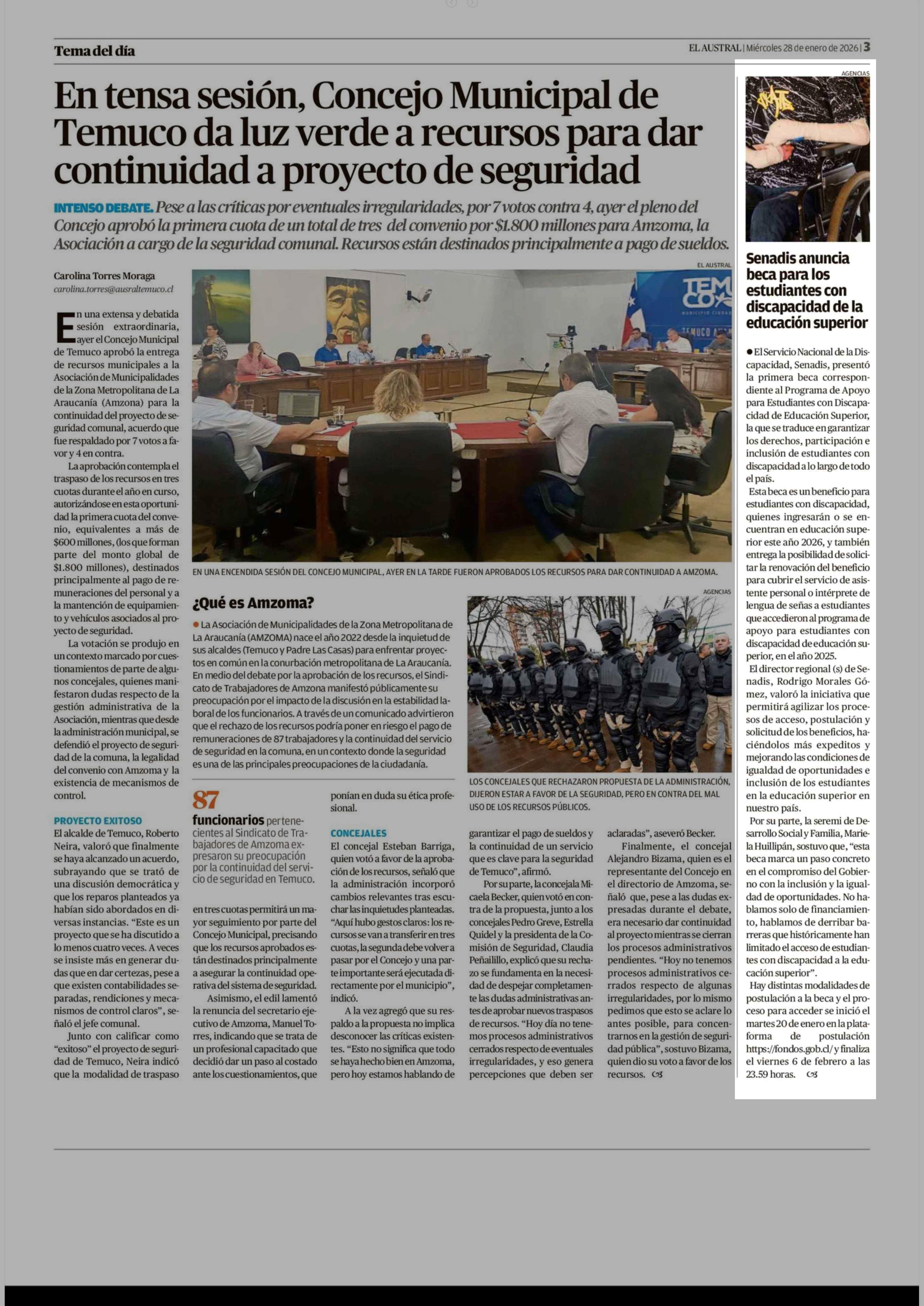 Fuente: El Austral de la Araucanía (El Austral de la Araucanía) Página(s): 3