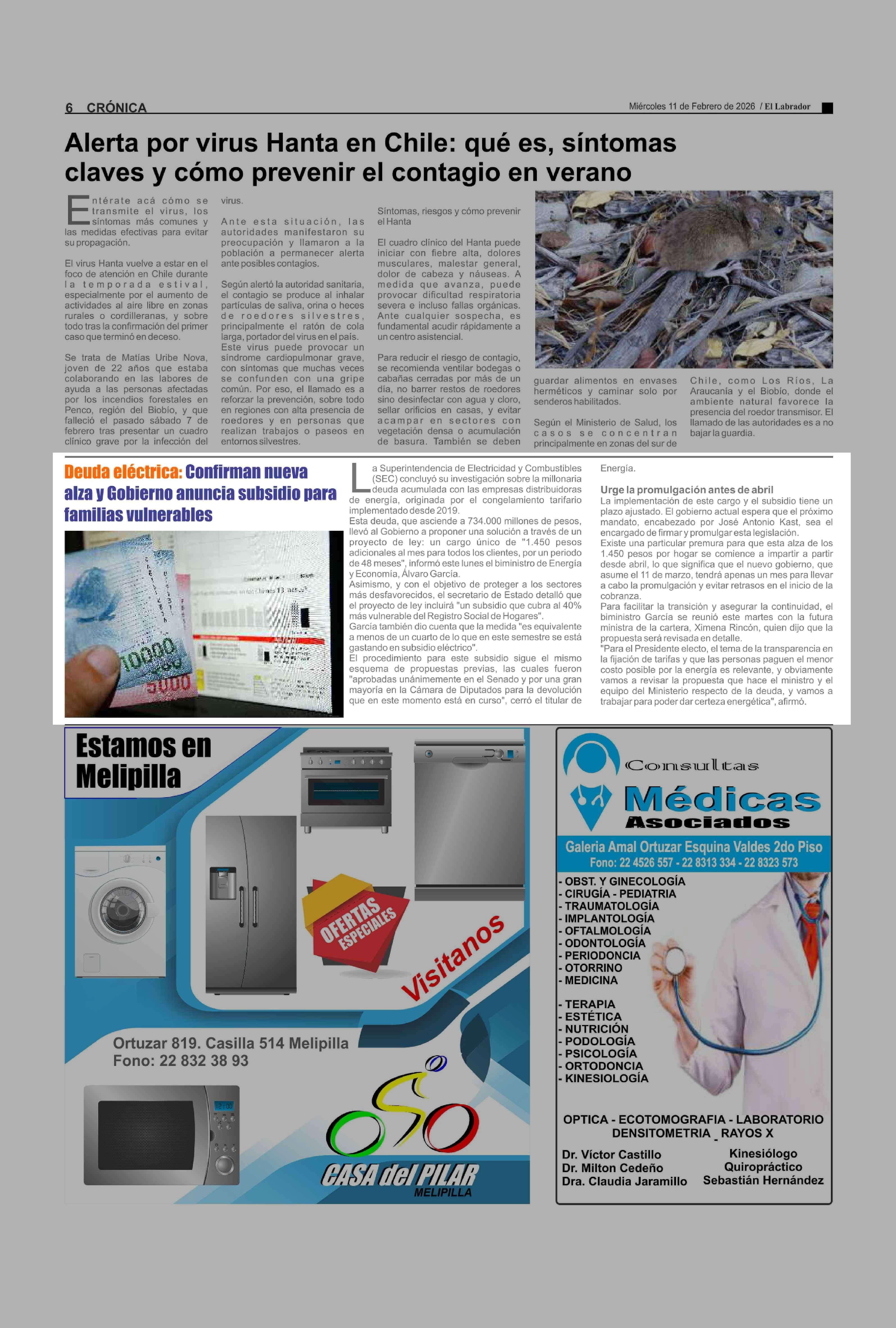 Deuda eléctrica: Confirman nueva alza y Gobierno anuncia subsidio para familias vulnerables 11-02-2026 El Labrador |