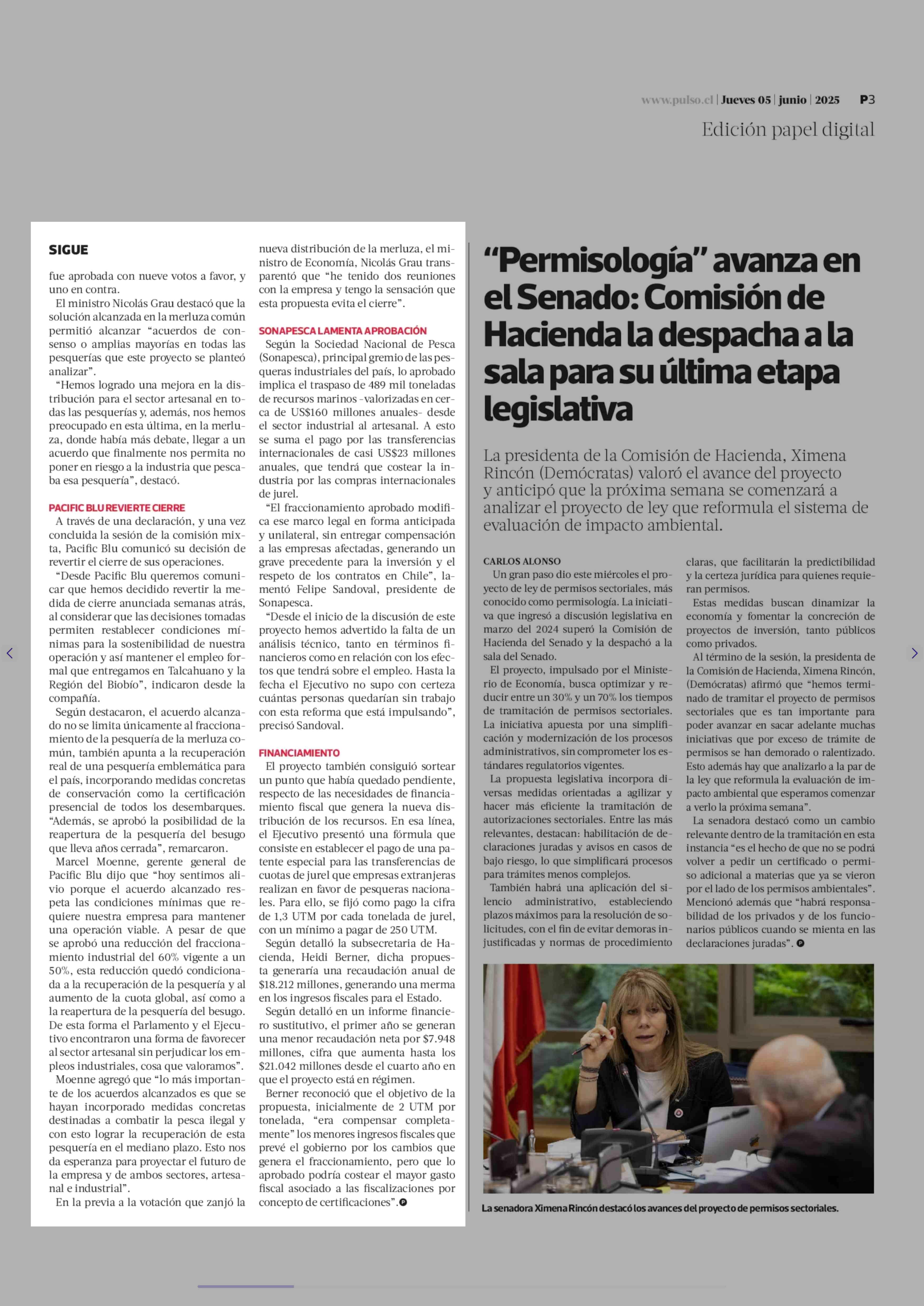 Título: Nueva ley de pesca sortea última valla tras acordar nueva cuota de la merluza y Pacific Blu revierte su cierre