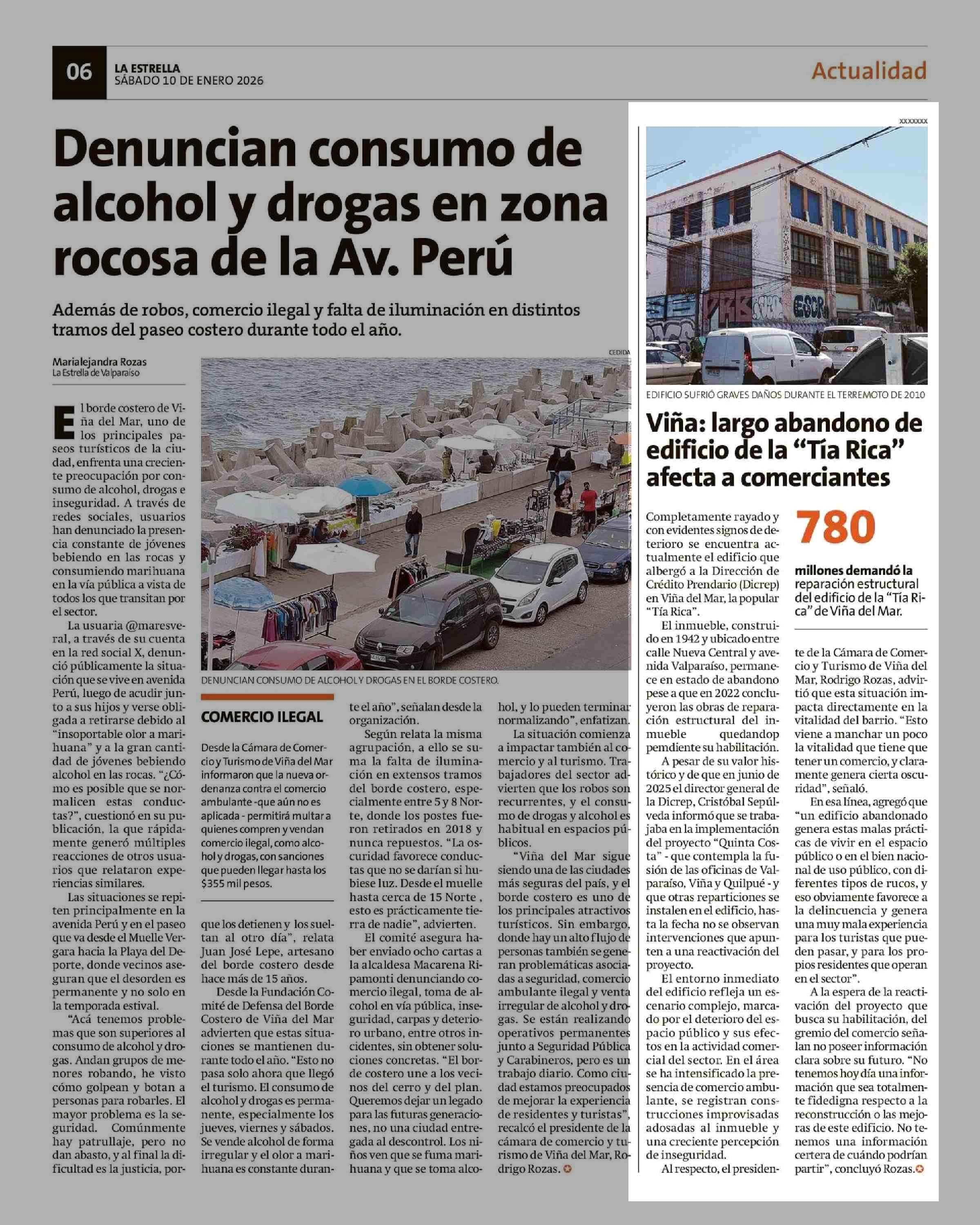 Viña: largo abandono de edificio de la "Tía Rica" afecta a comerciantes 10-01-2026 La Estrella de Valparaíso |