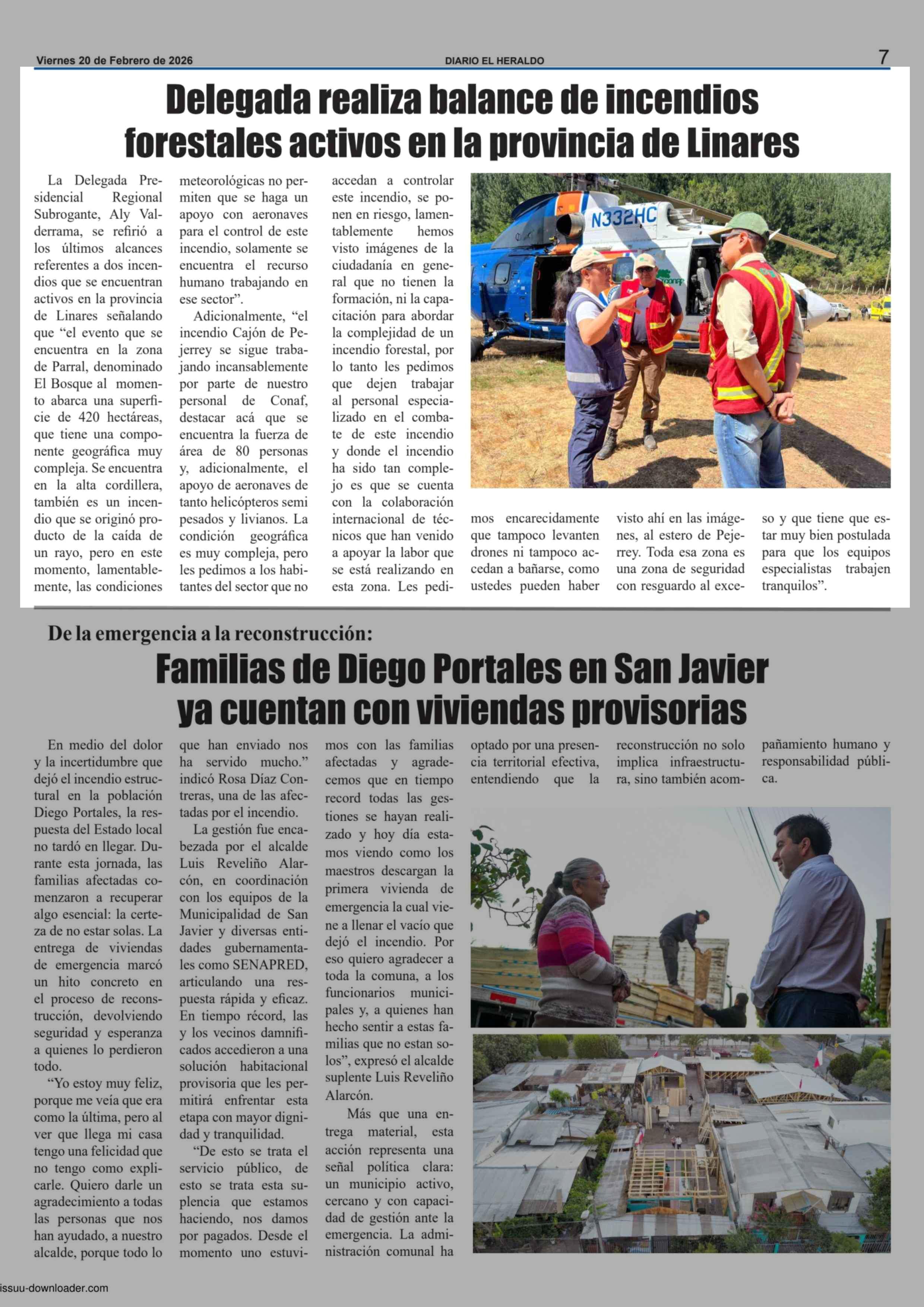 Delegada realiza balance de incendios forestales activos en la provincia de Linares 20-02-2026 El Heraldo |