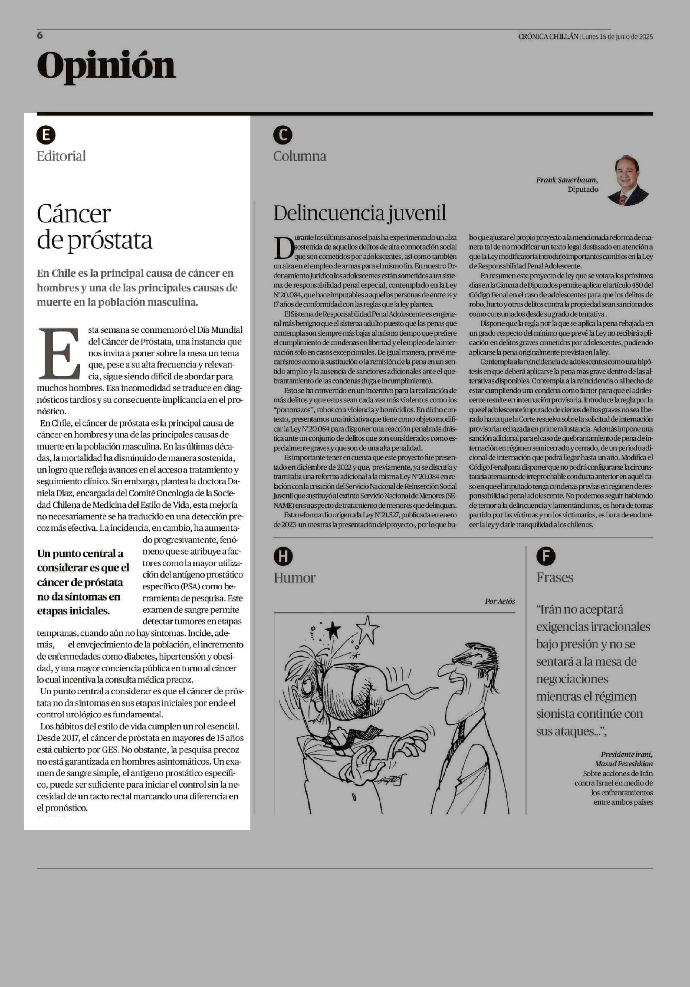 Editorial: Cáncer de próstata 16-06-2025 Crónica de Chillán |