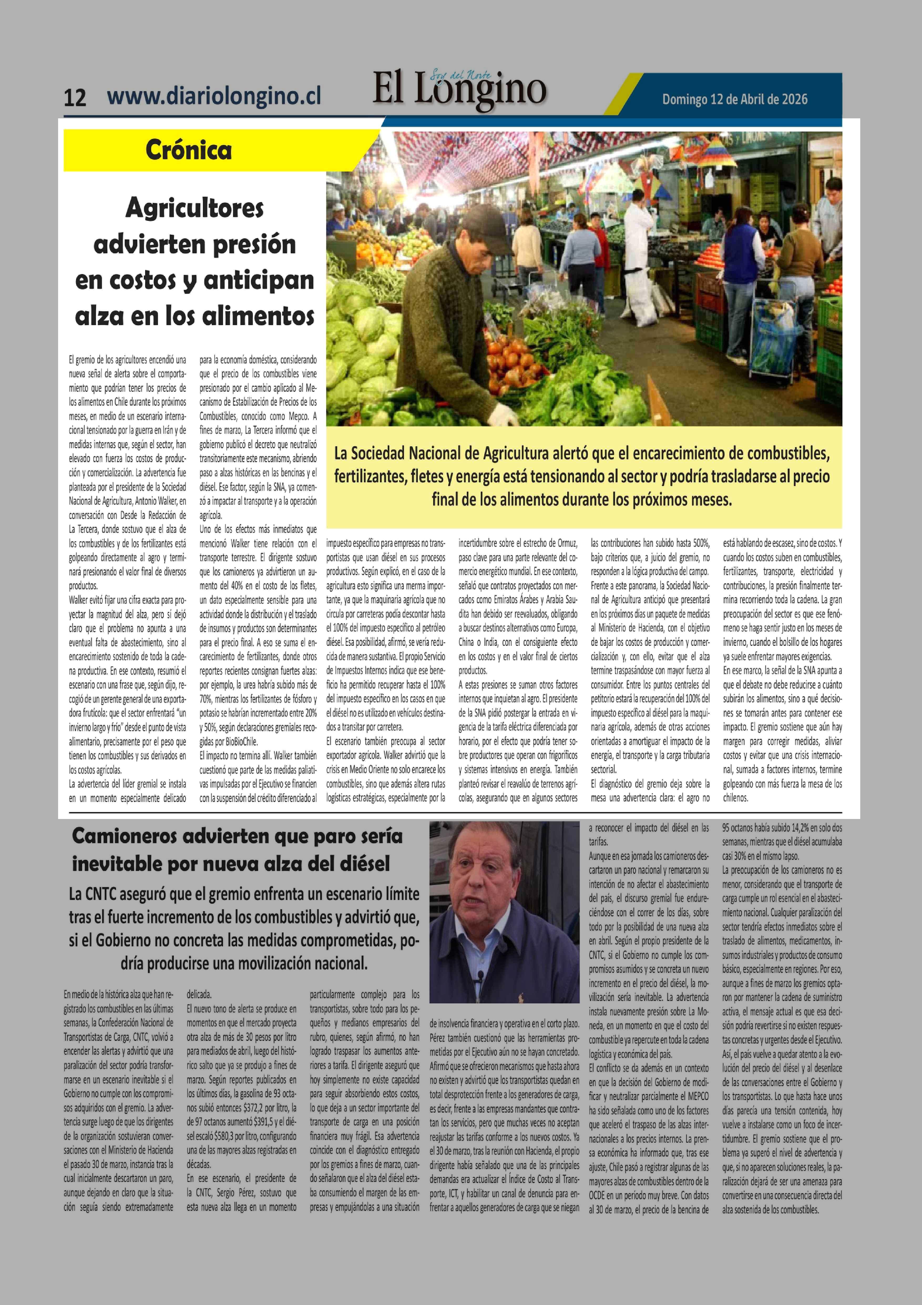 Agricultores advierten presión en costos y anticipan alza en los alimentos 12-04-2026 El Longino |