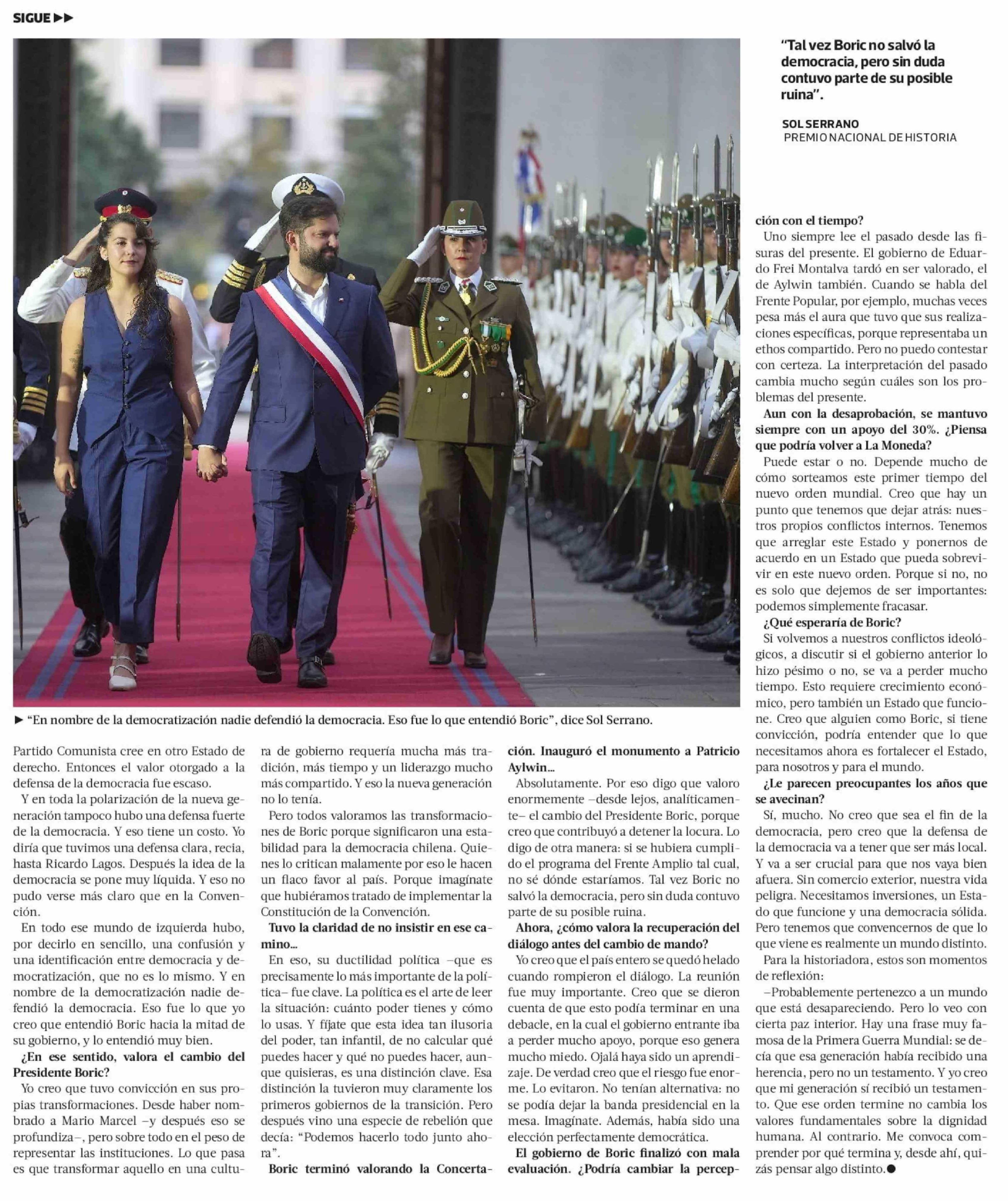| Título: | Sol Serrano: "Todos valoramos las transformaciones de Boric porque significaron estabilidad para la democracia chilena" |