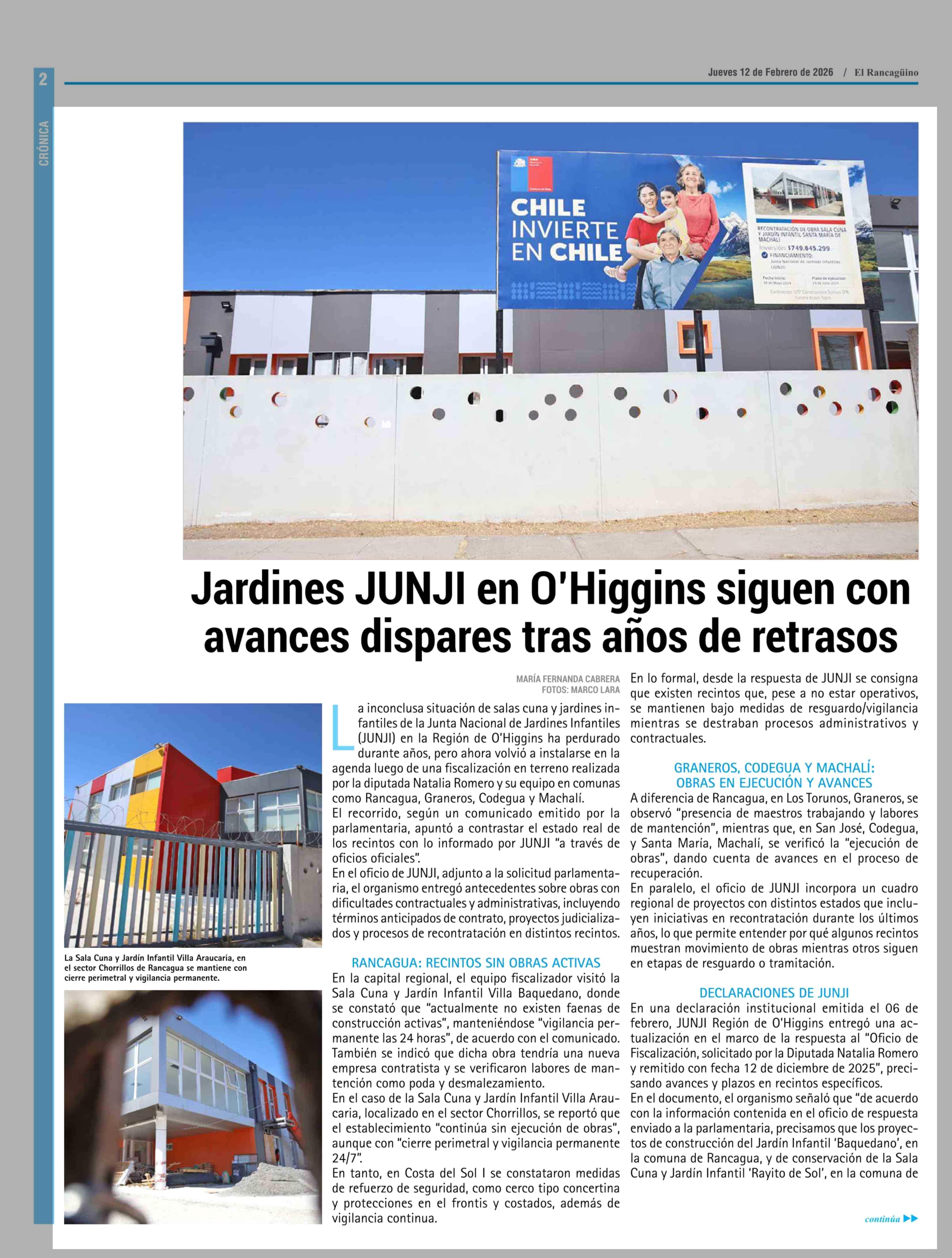 Título: Jardines JUNJI en O'Higgins siguen con avances dispares tras años de retrasos