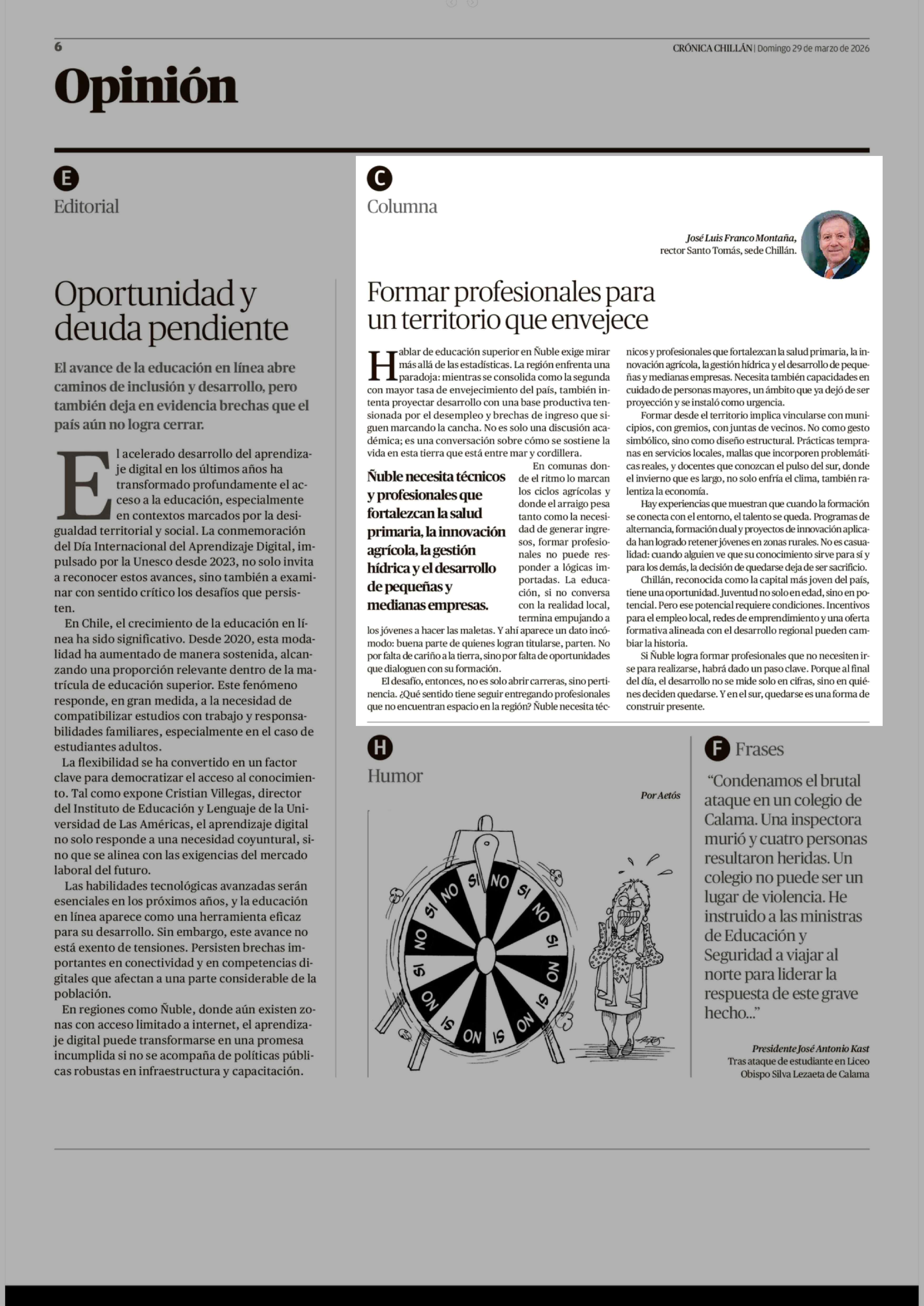 Fecha: 29-03-2026 Sector: Columnas de Opinión Región: Región del Ñuble