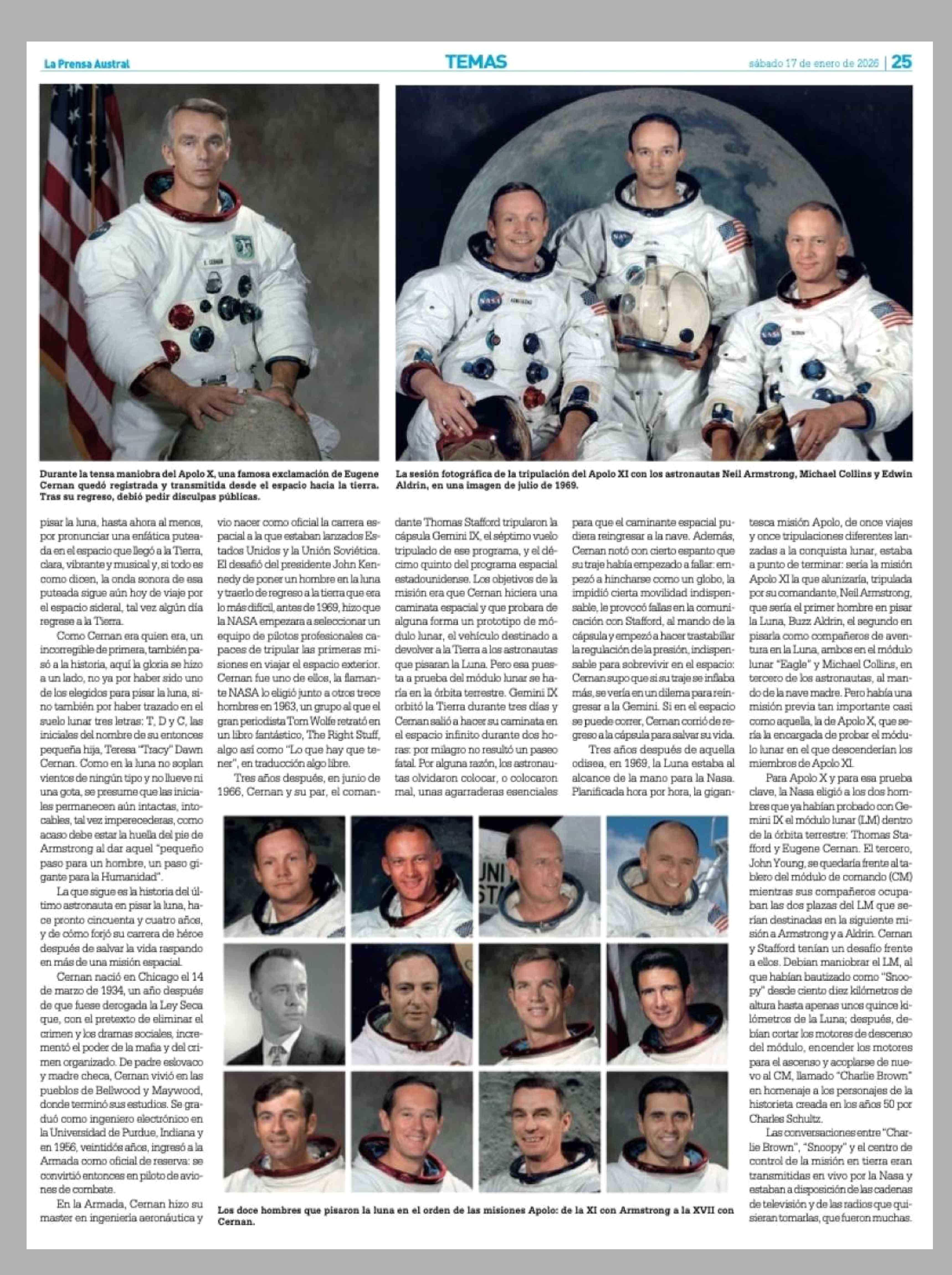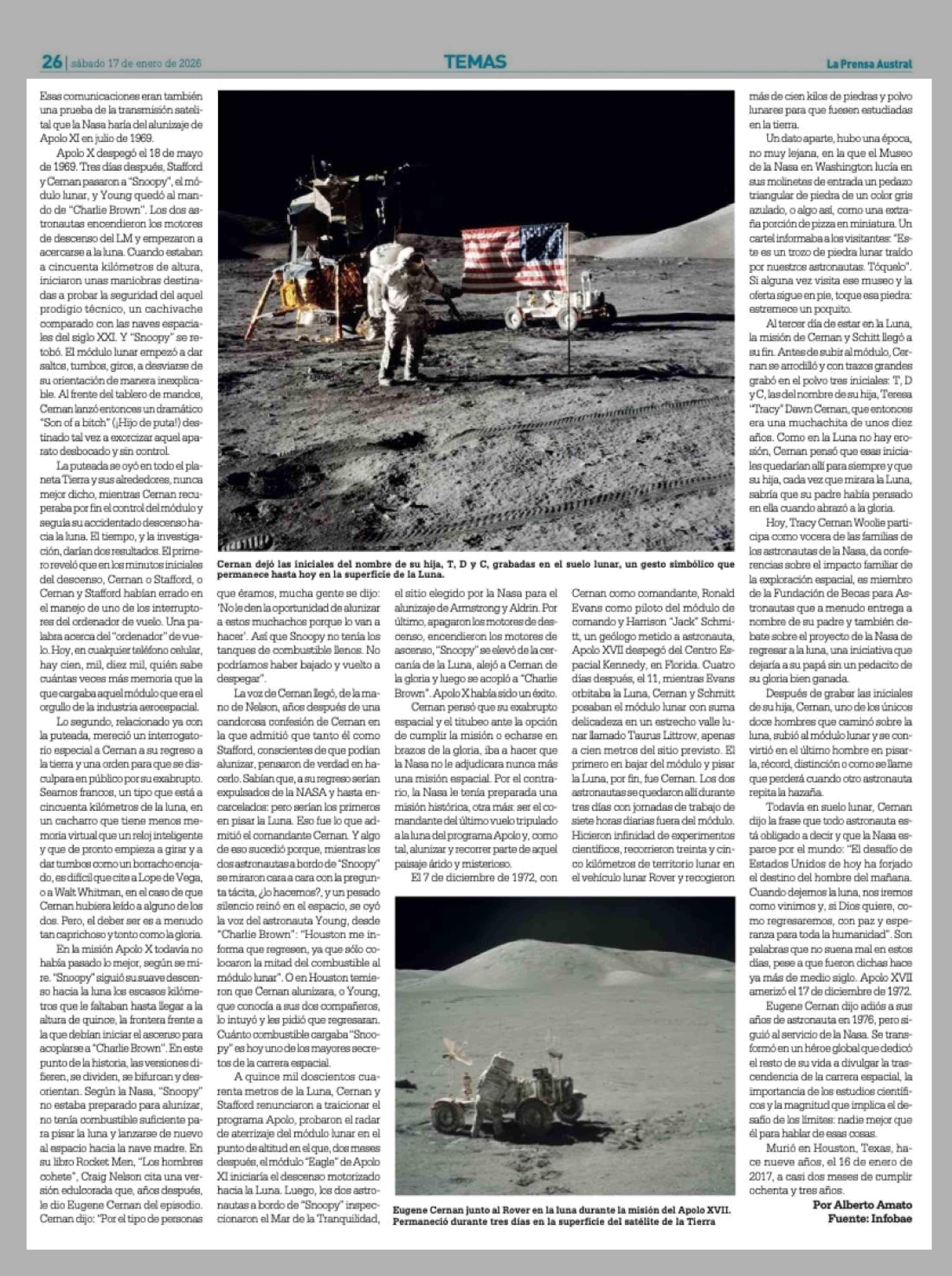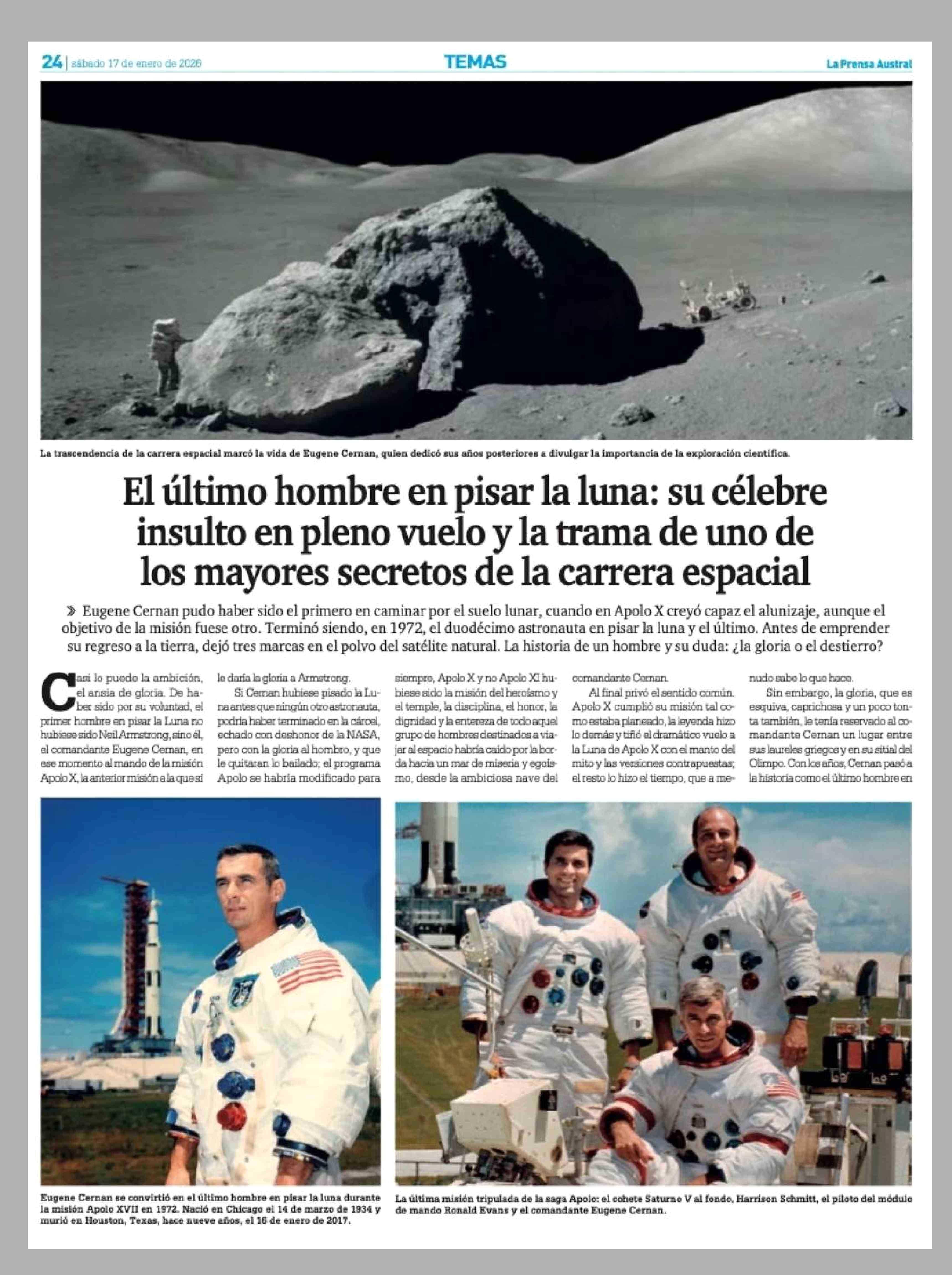 El último hombre en pisar la luna: su célebre insulto en pleno vuelo y la trama de uno de los mayores secretos de la carrera espacial 17-01-2026 La Prensa Austral |