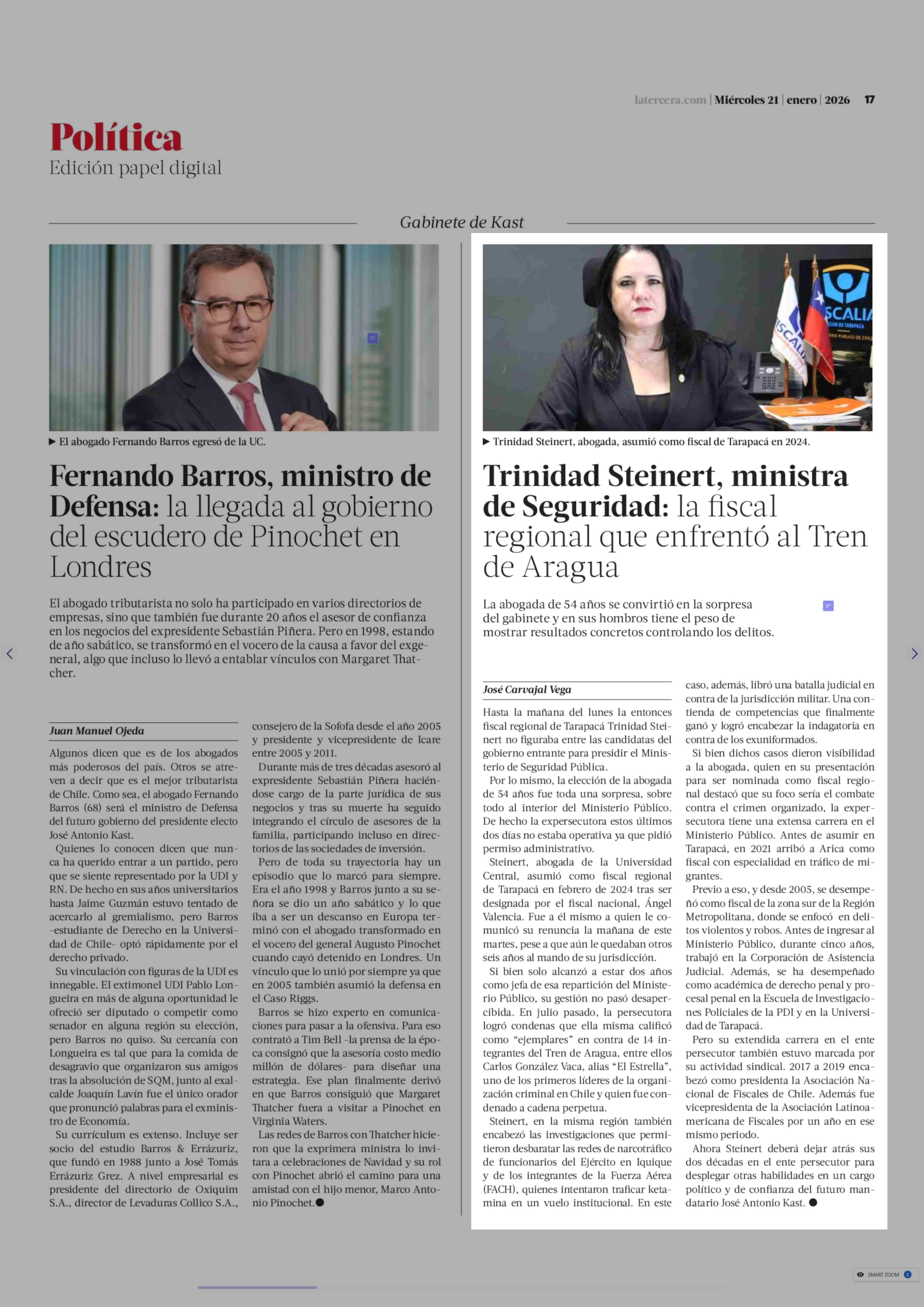 Trinidad Steinert, ministra de Seguridad: la fiscal regional que enfrentó al Tren de Aragua 21-01-2026 La Tercera |