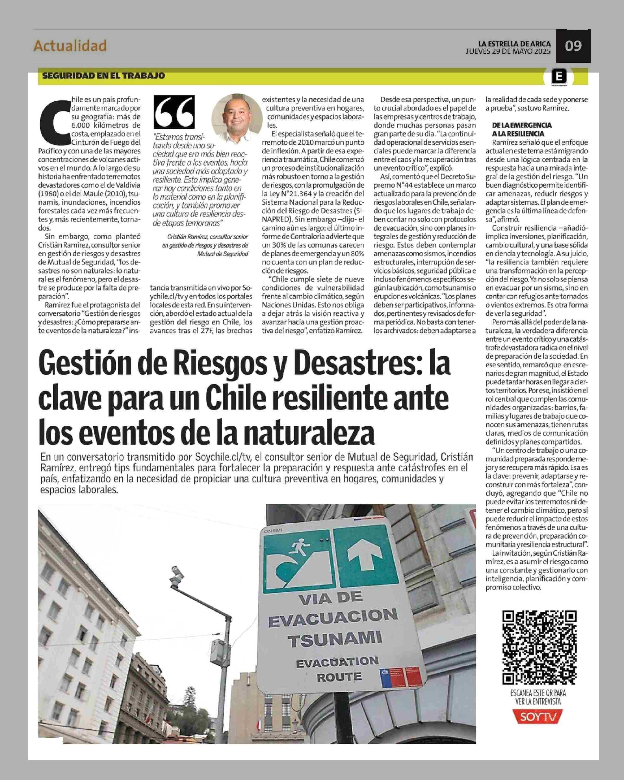 Gestión de Riesgos y Desastres: la clave para un Chile resiliente ante los eventos de la naturaleza 29-05-2025 La Estrella de Arica |