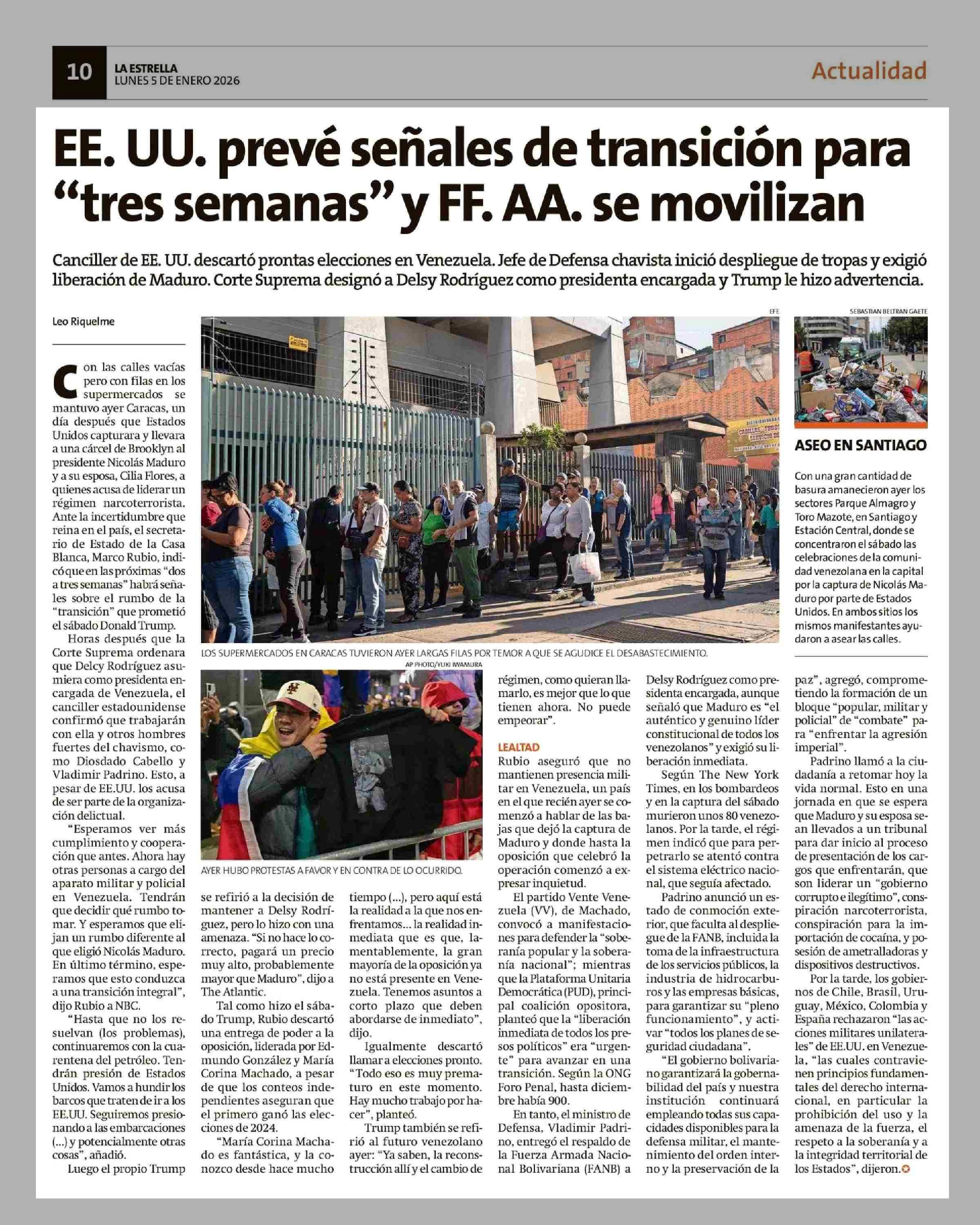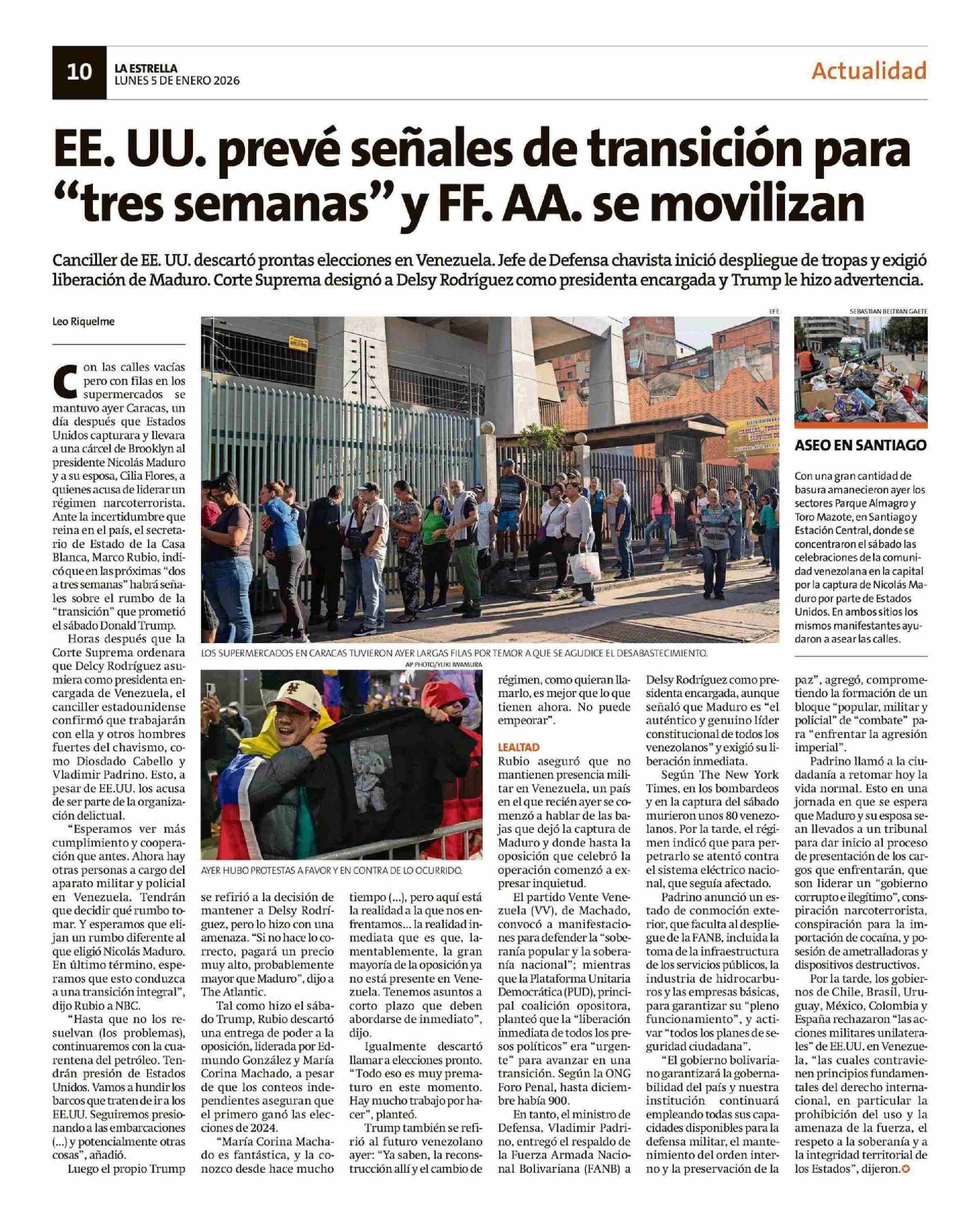 EE. UU. prevé señales de transición para "tres semanas" y FF. AA. se movilizan 05-01-2026 La Estrella de Chiloé |