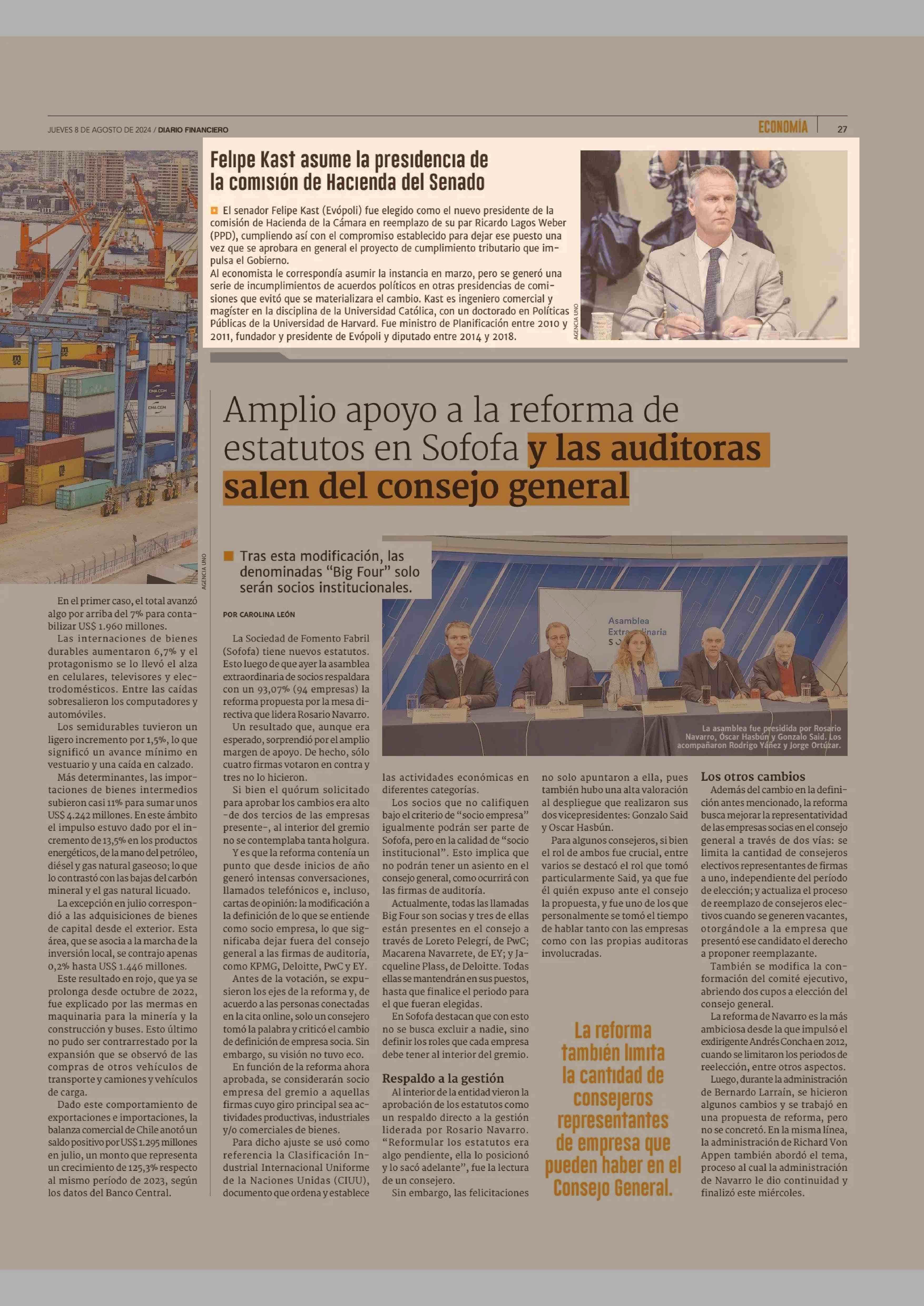 Felipe Kast asume la presidencia de la comisión de Hacienda del Senado 08-08-2024 Diario Financiero |