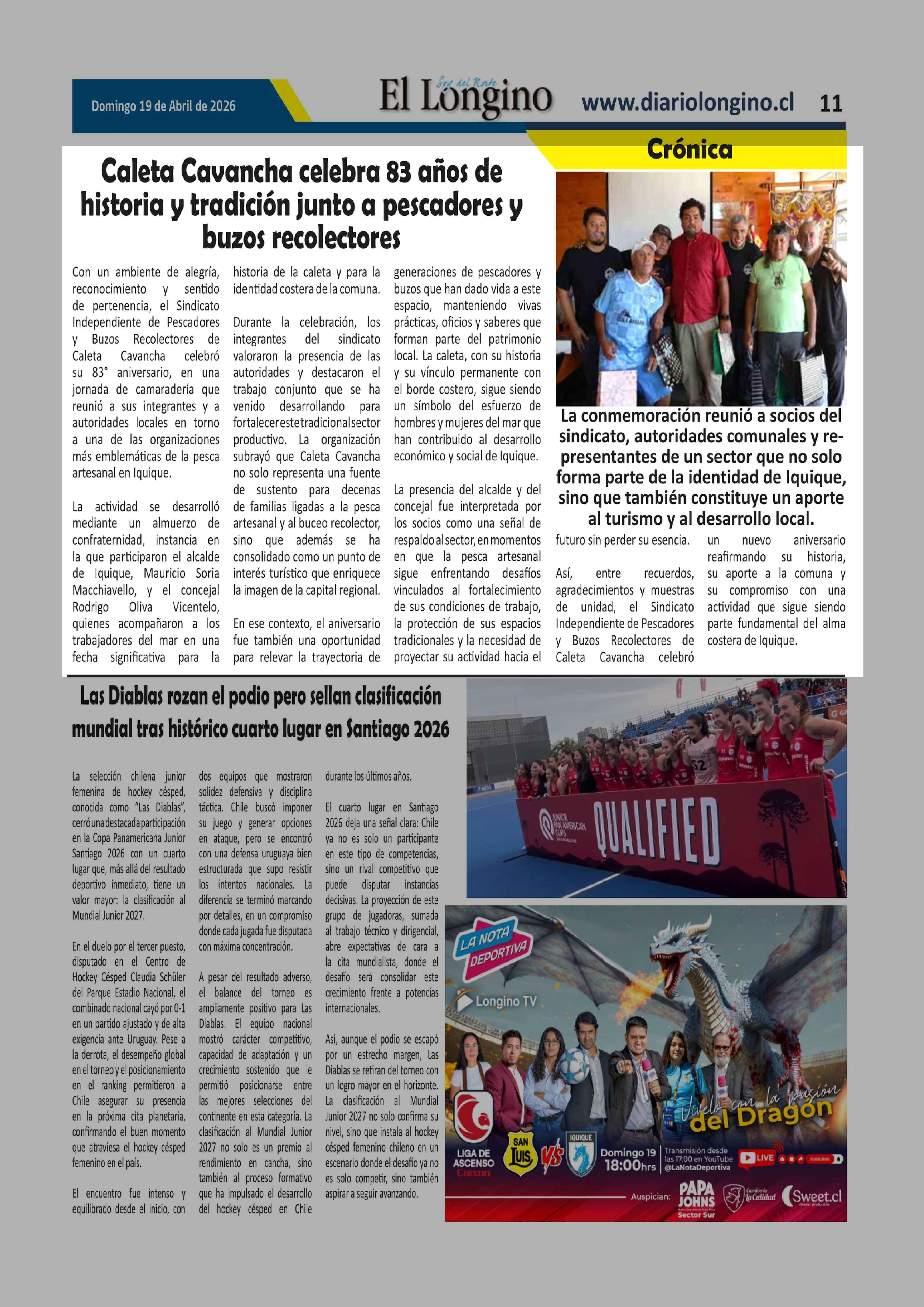 | Fecha: | 19-04-2026 | Sector: | Noticia general | Región: | Región de Tarapacá |