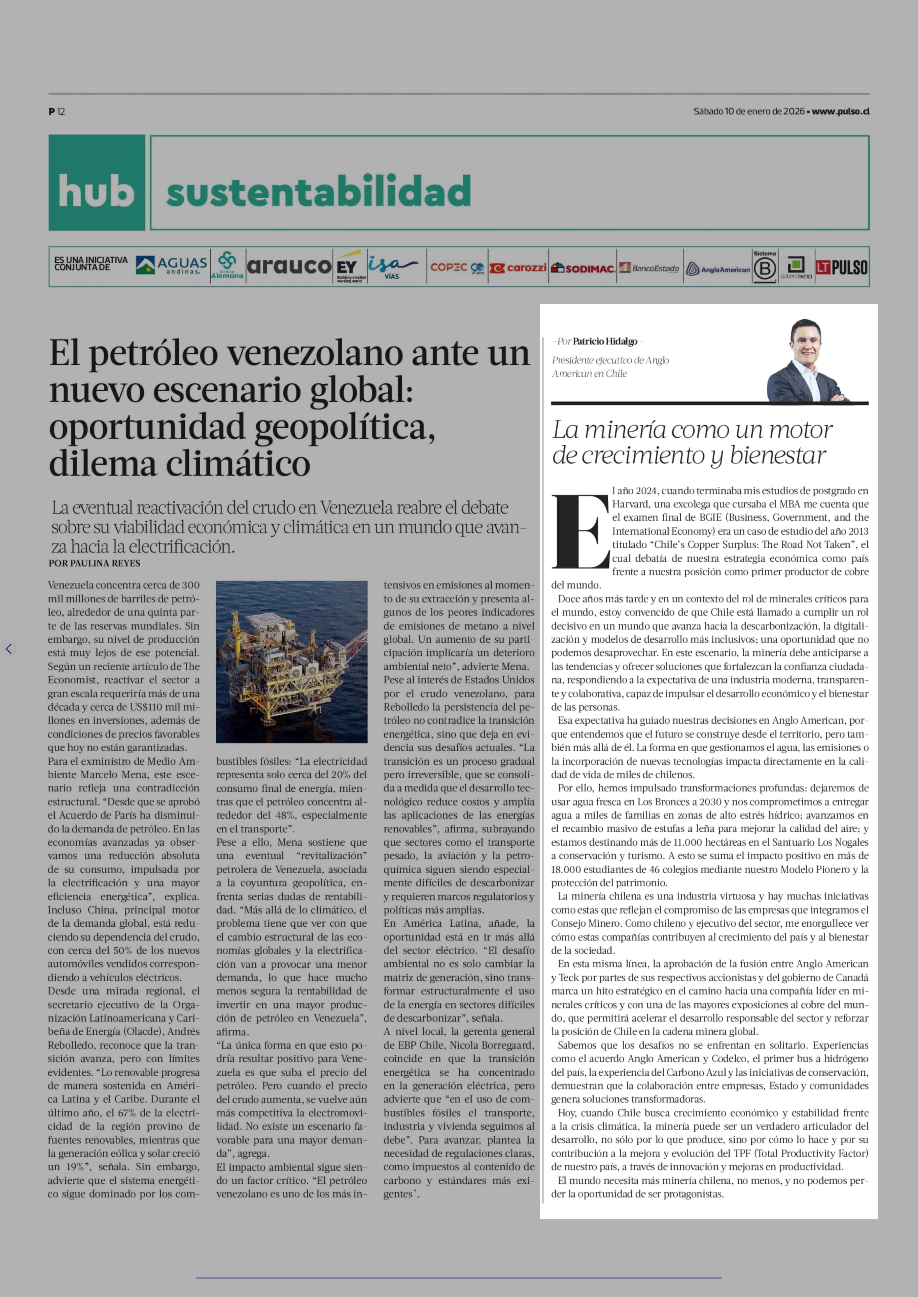 Columnas de Opinión: La minería como un motor de crecimiento y bienestar 10-01-2026 La Tercera |