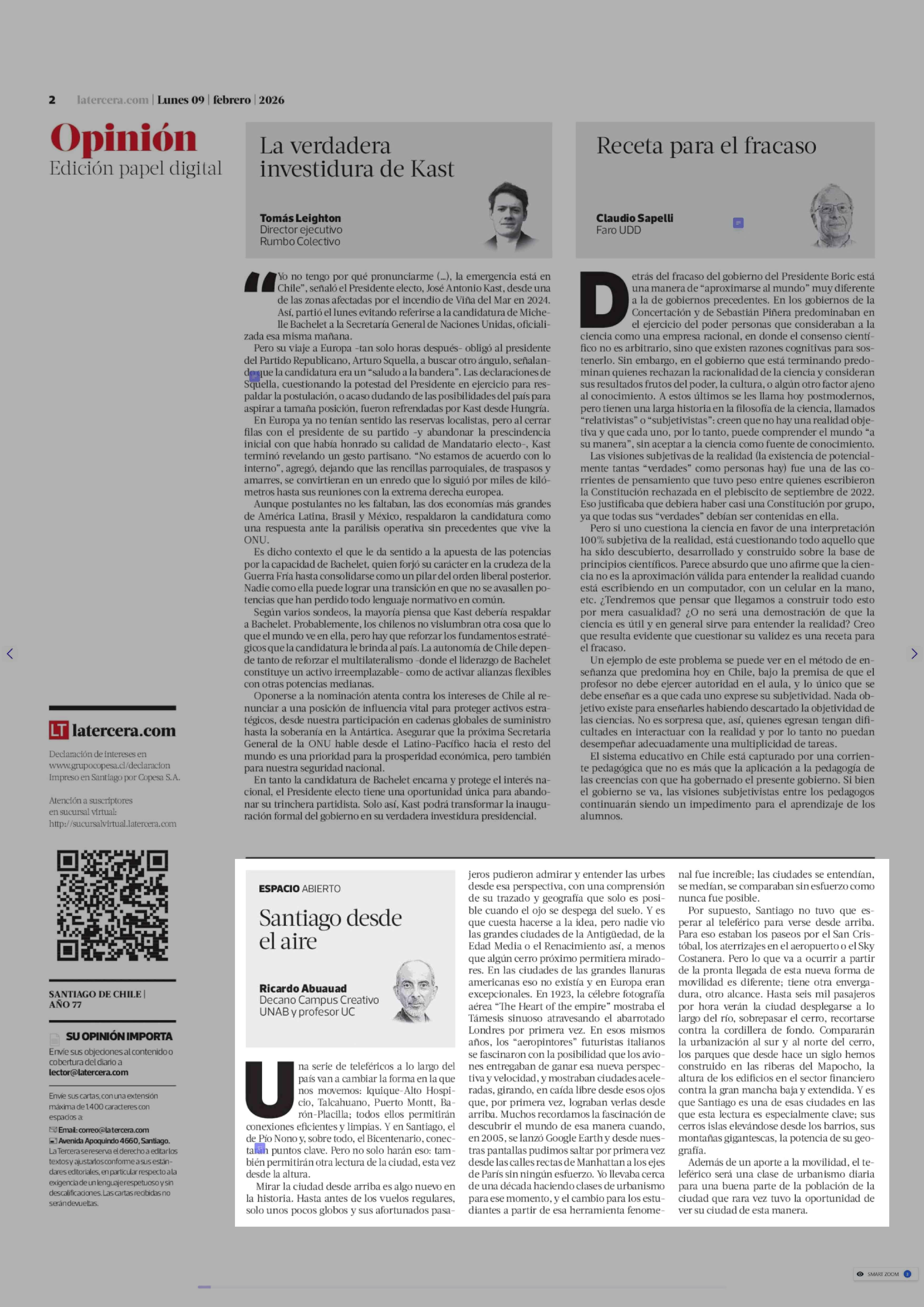 Columnas de Opinión: Santiago desde el aire 09-02-2026 La Tercera |