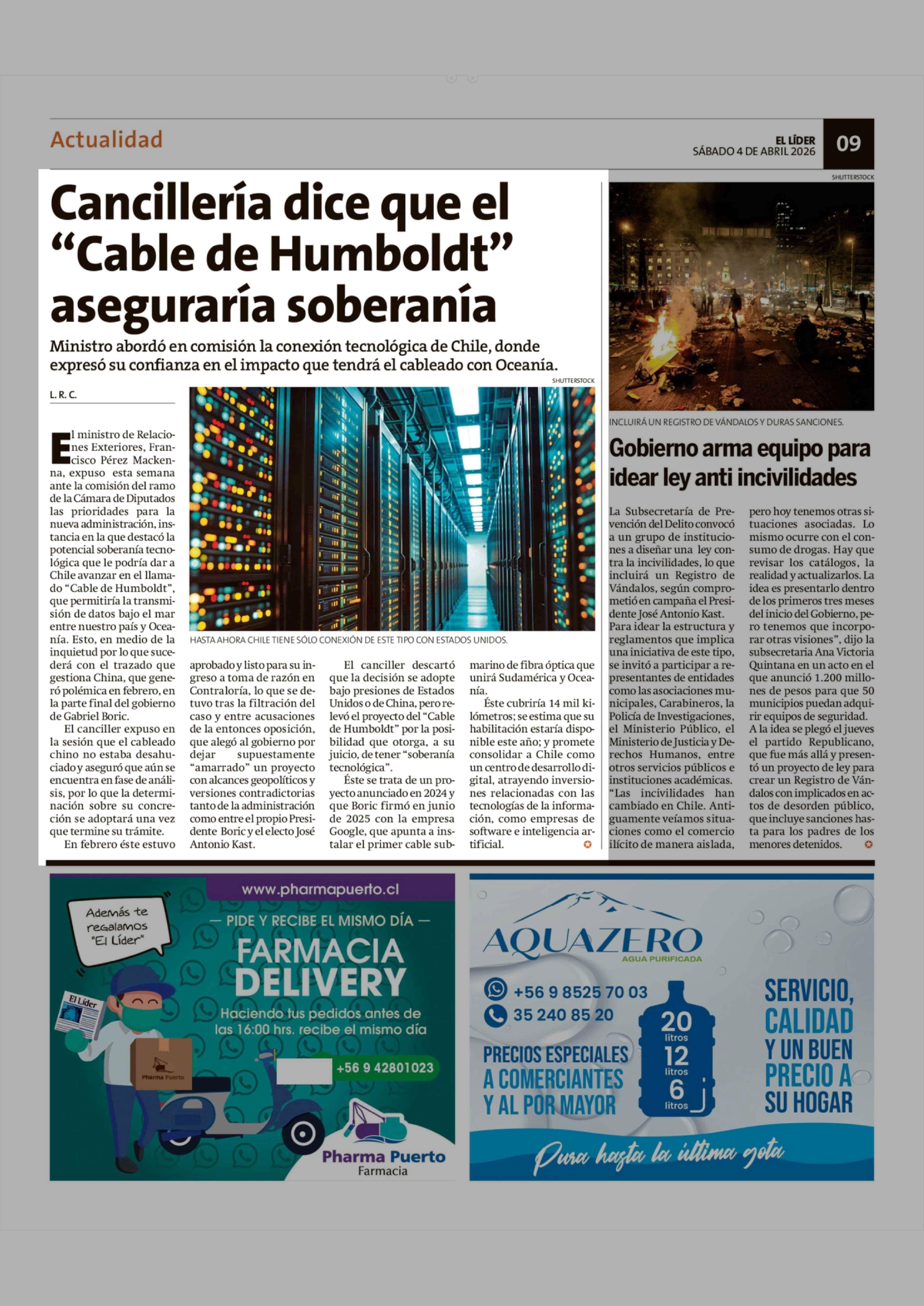 Título: Cancillería dice que el "Cable de Humboldt" aseguraría soberanía