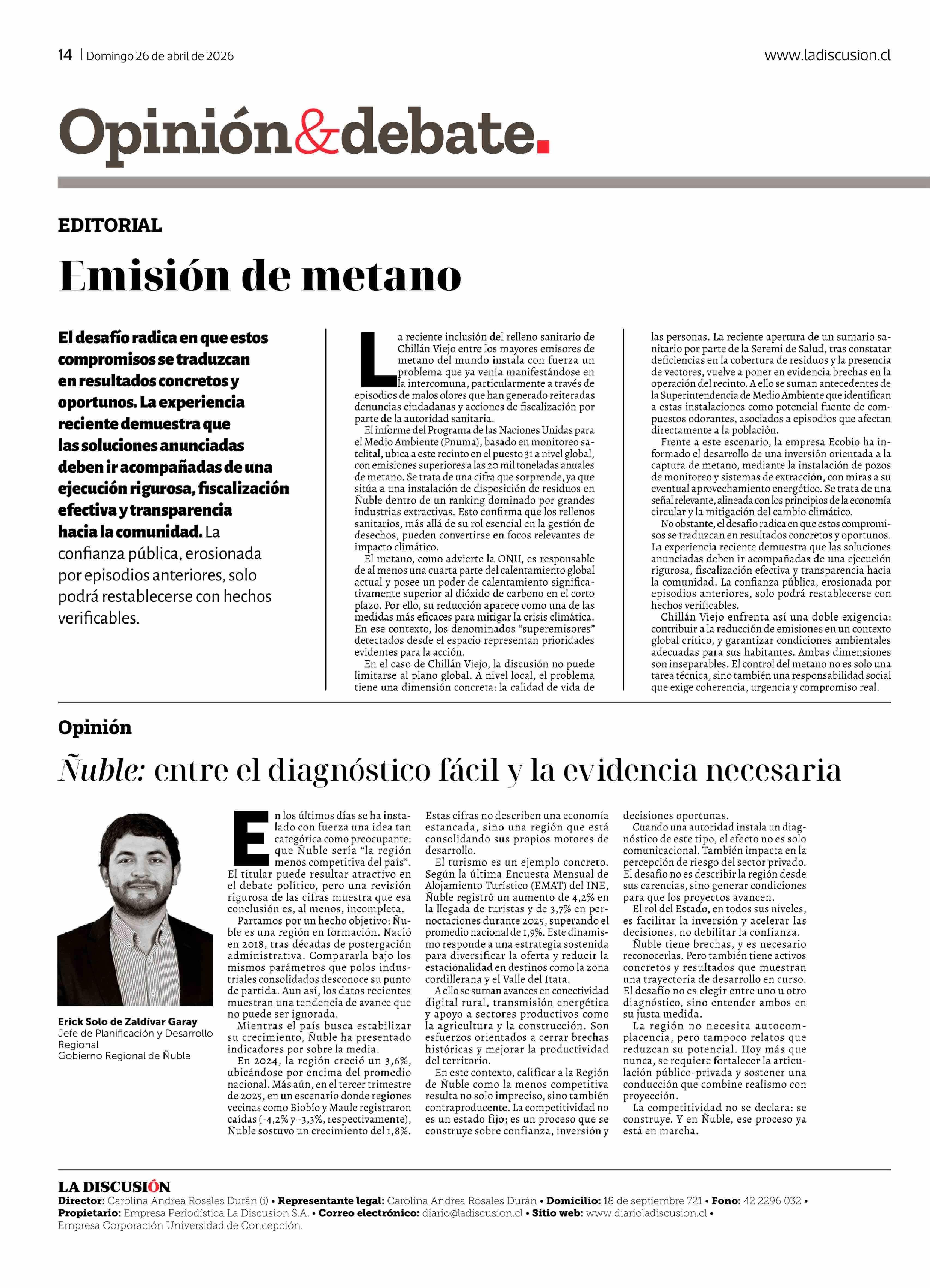 Editorial: Emisión de metano 26-04-2026 La Discusión |