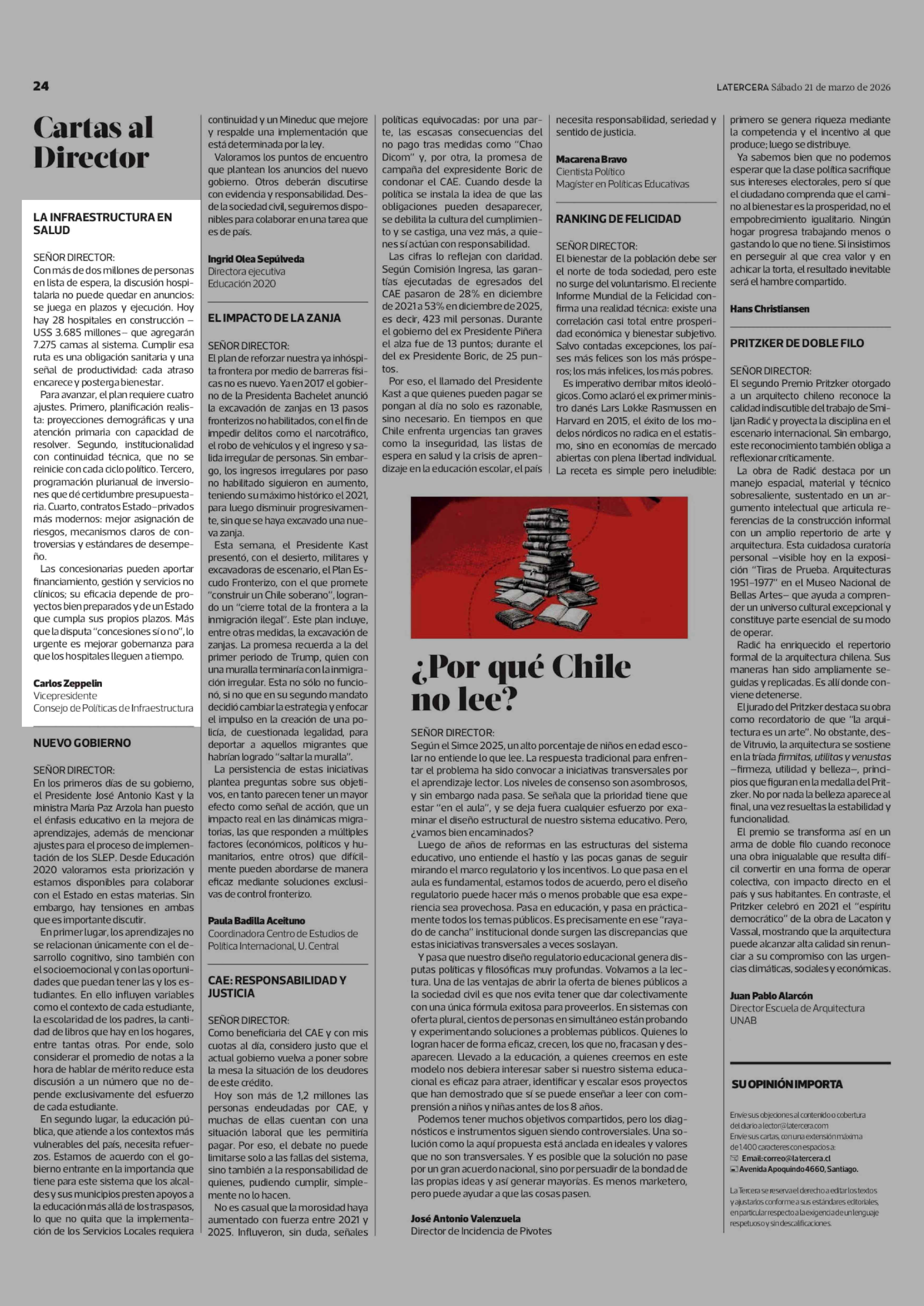 Cartas: LA INFRAESTRUCTURA EN SALUD 21-03-2026 La Tercera |