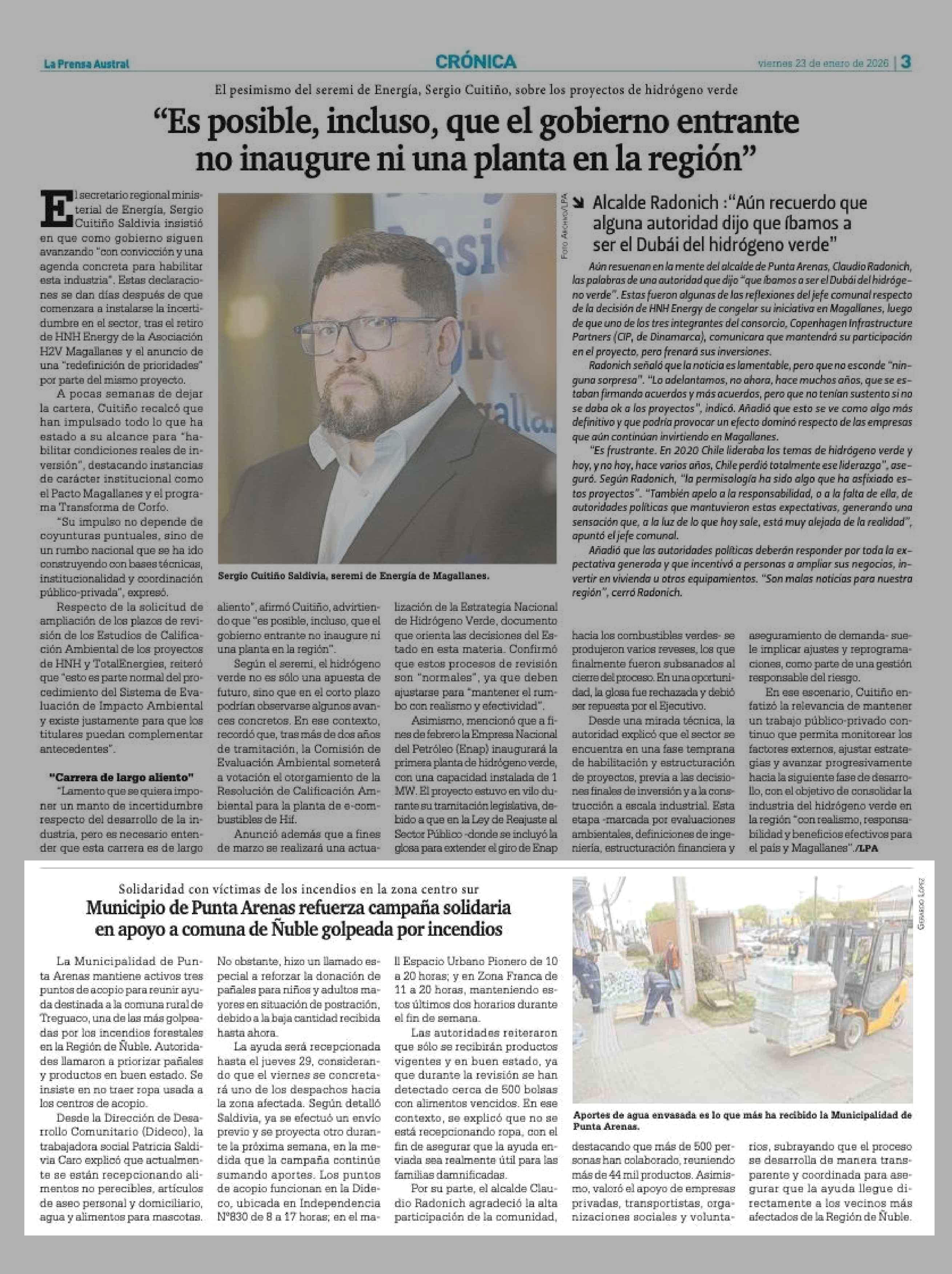 | Fecha: | 23-01-2026 | Sector: | Noticia general | Región: | Región de Magallanes y de la Antártica Chilena |