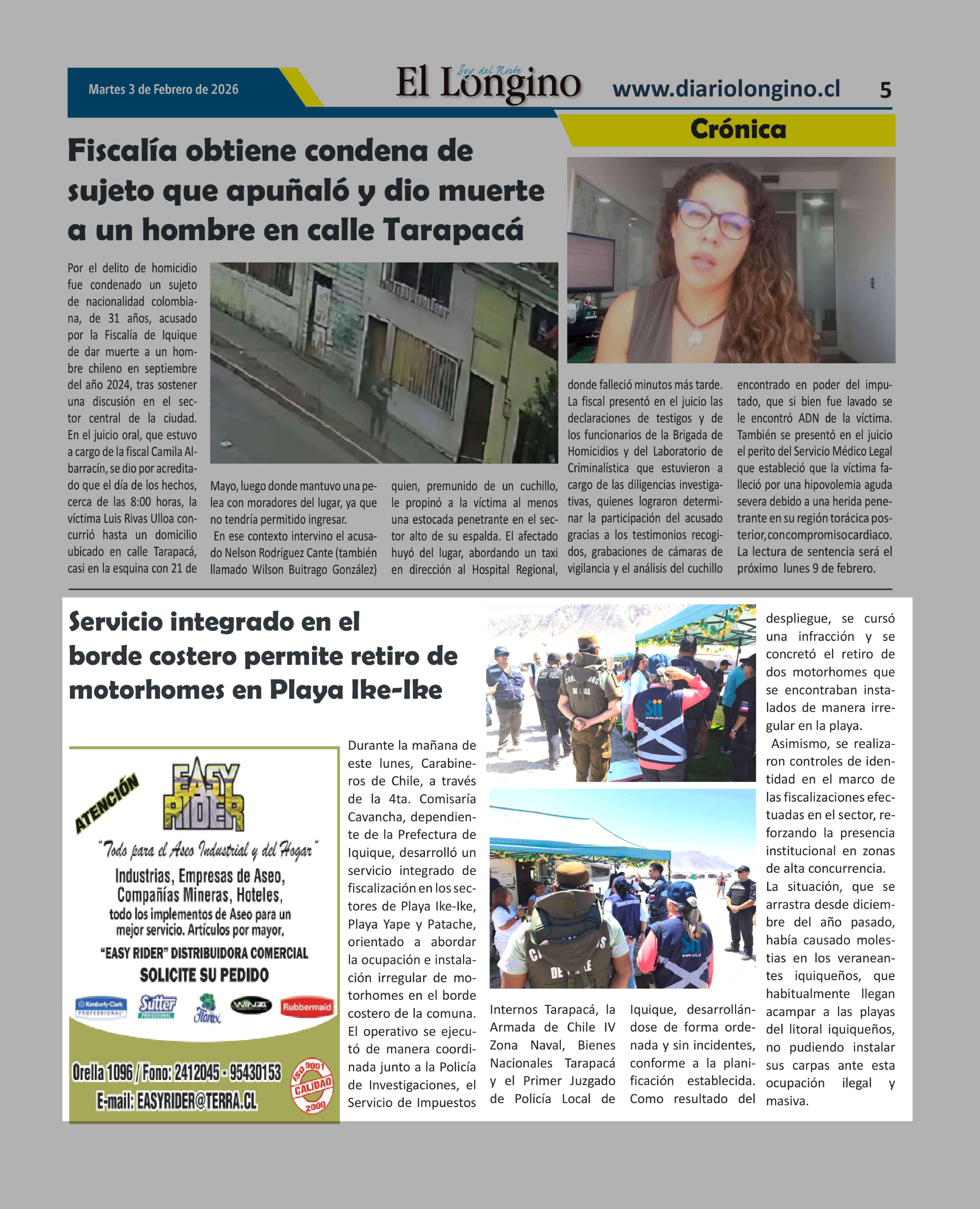 | Fecha: | 03-02-2026 | Sector: | Noticia general | Región: | Región de Tarapacá |