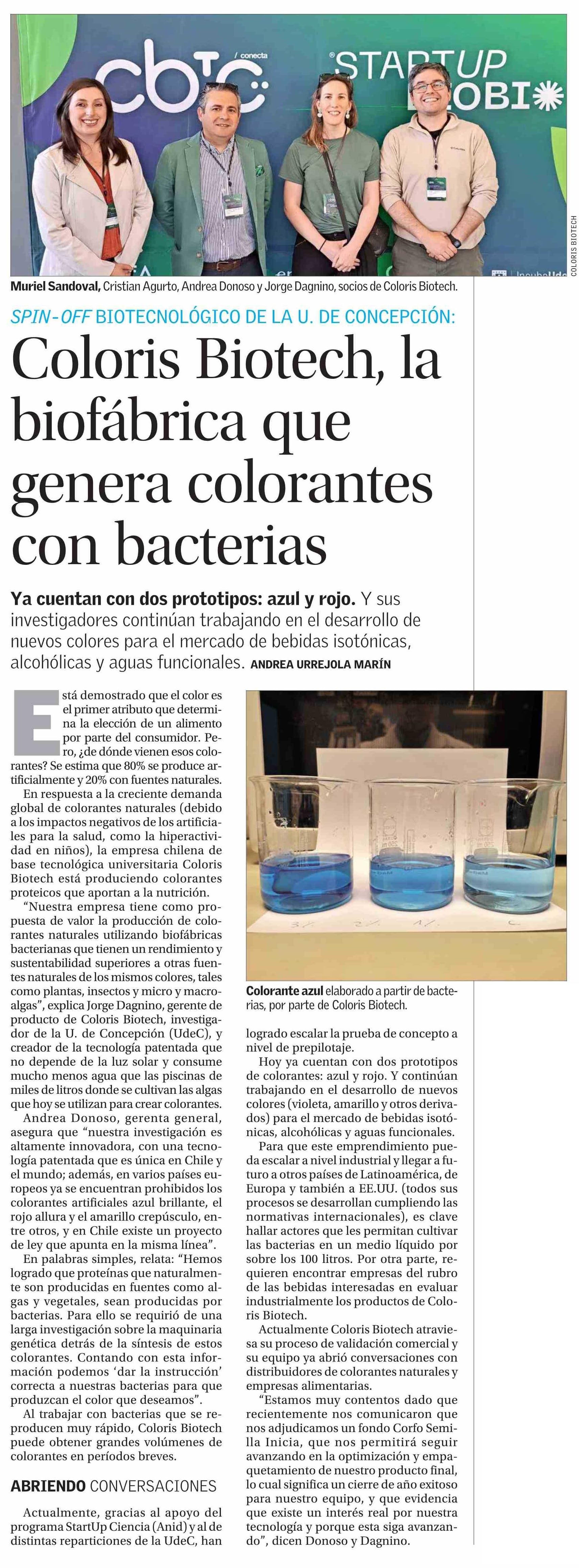 Coloris Biotech, la biofábrica que genera colorantes con bacterias 30-11-2023 El Mercurio |