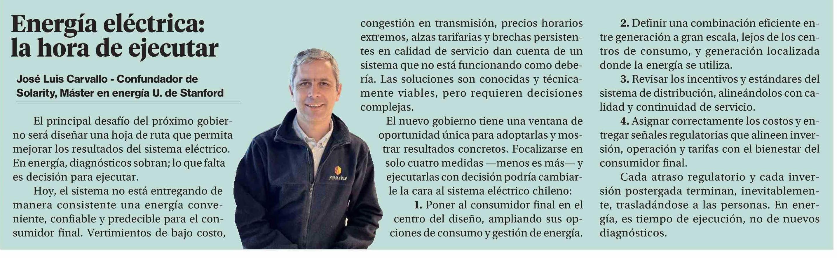 Título: Columnas de Opinión: Energía eléctrica: la hora de ejecutar