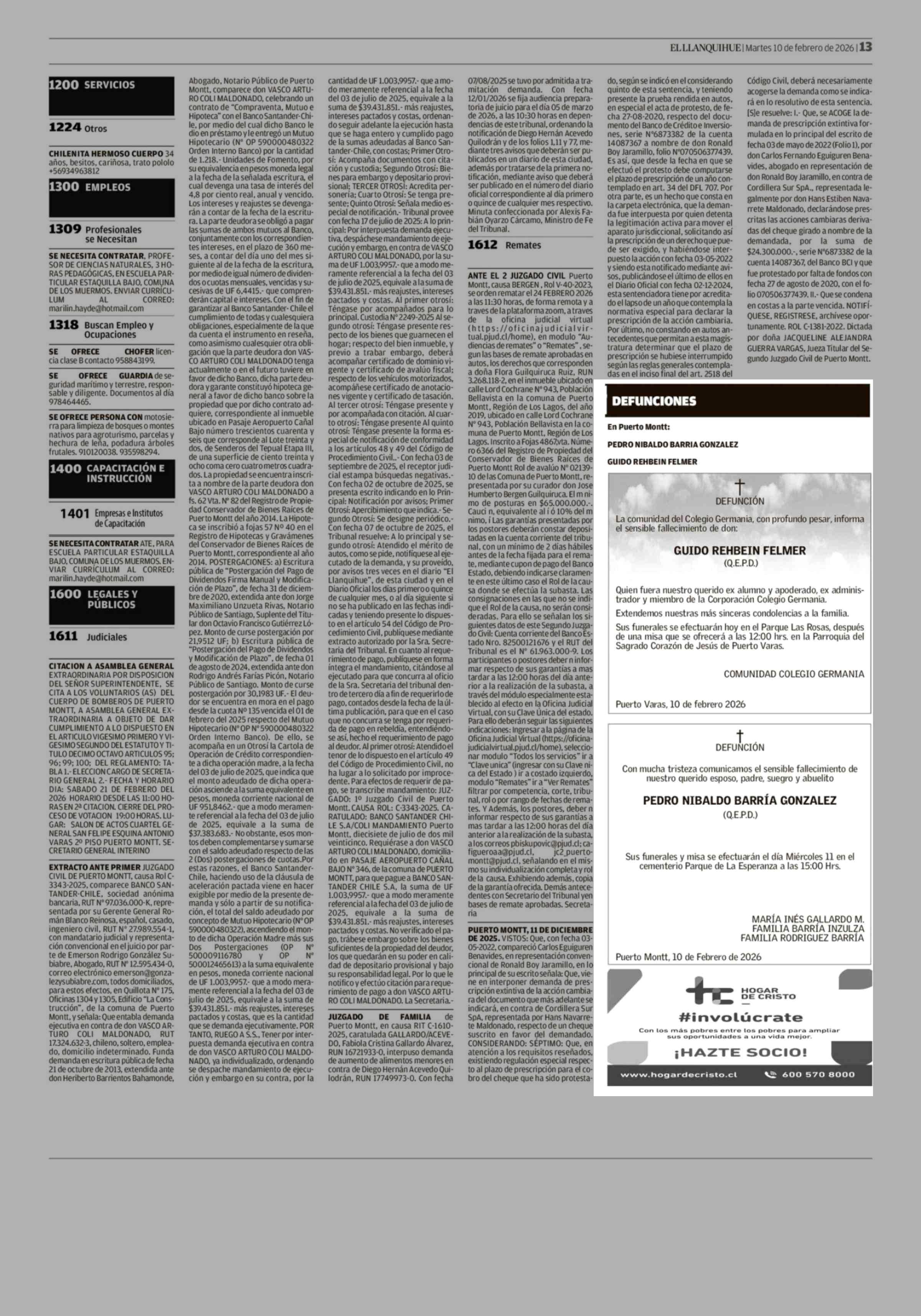 DEFUNCIONES 10-02-2026 El Llanquihue |