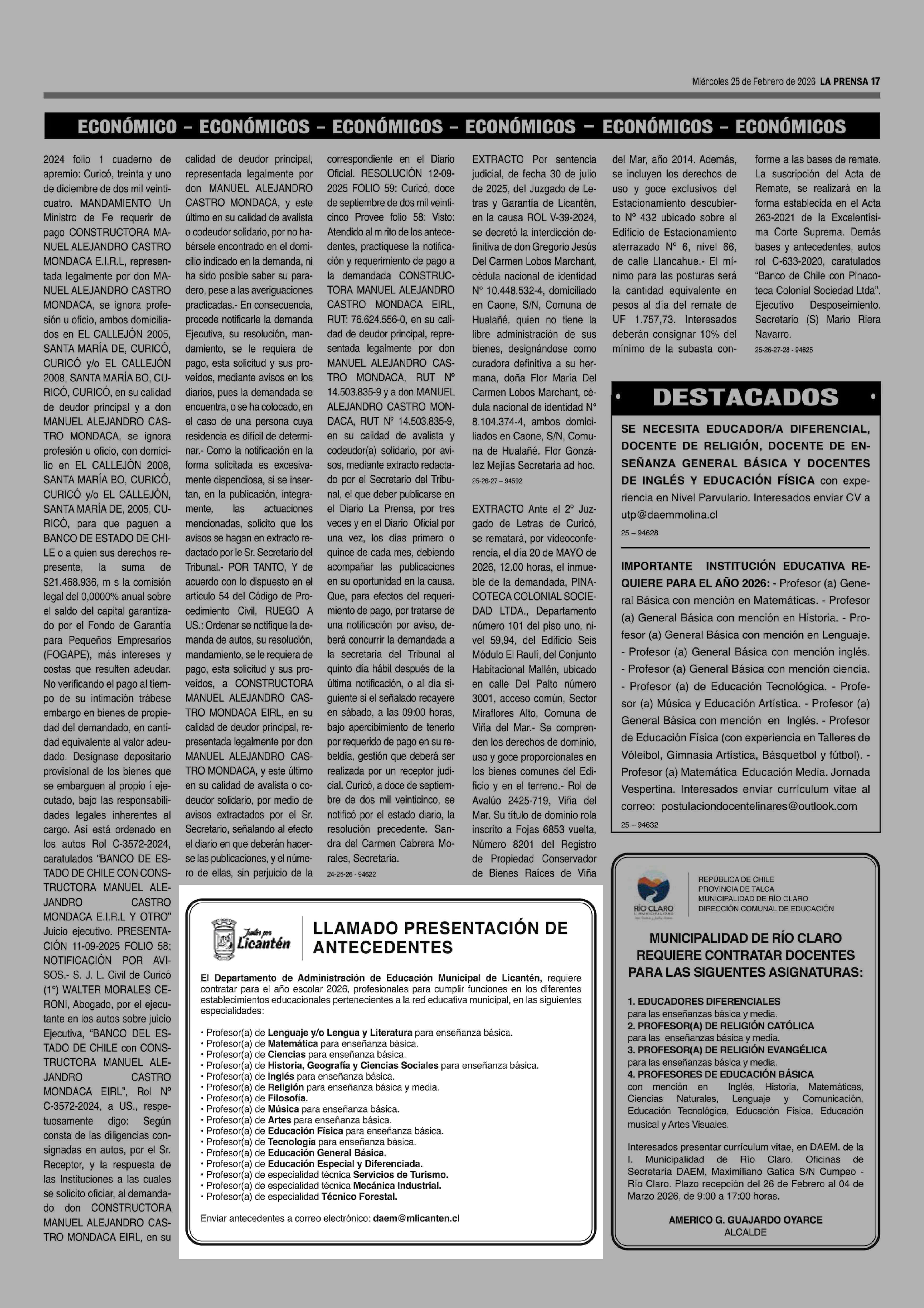 Fuente: La Prensa de Curicó (La Prensa de Curicó) Página(s): 17