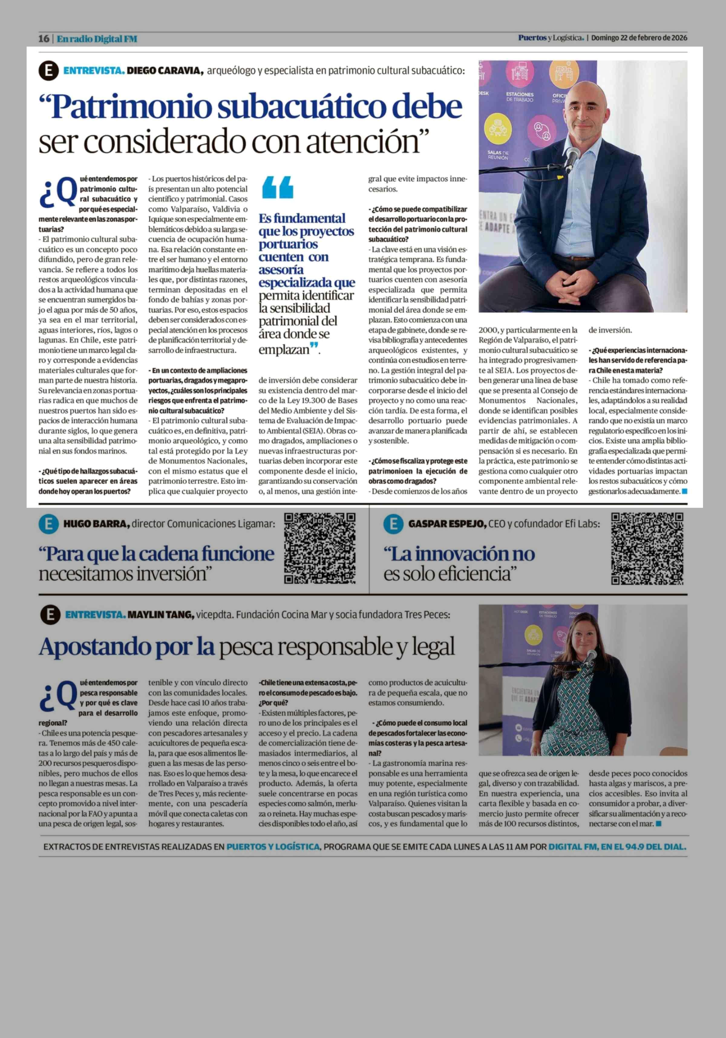 "Patrimonio subacuático debe ser considerado con atención" 22-02-2026 El Mercurio de Valparaíso |