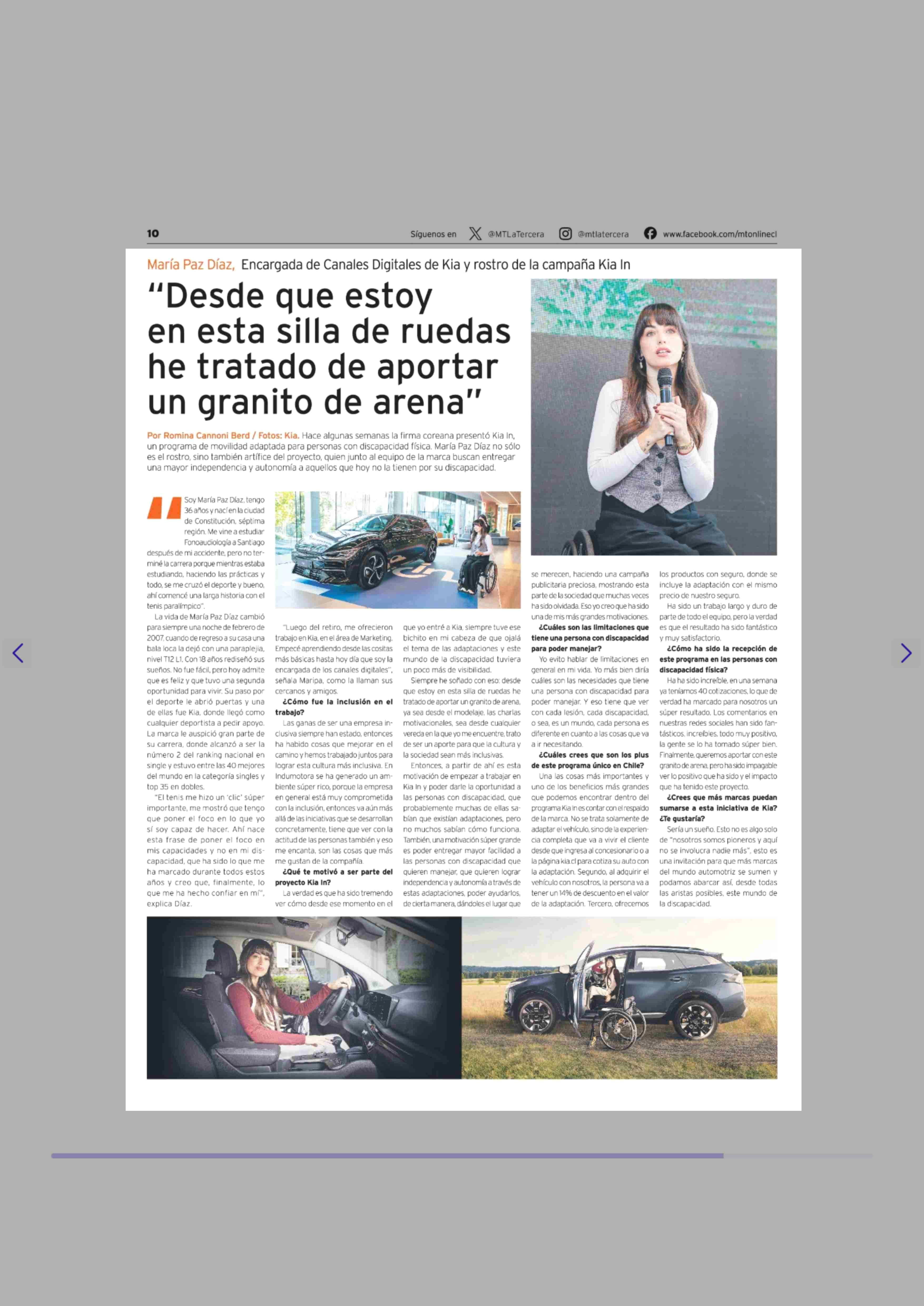 "Desde que estoy en esta silla de ruedas he tratado de aportar un granito de arena" 25-05-2025 La Tercera |
