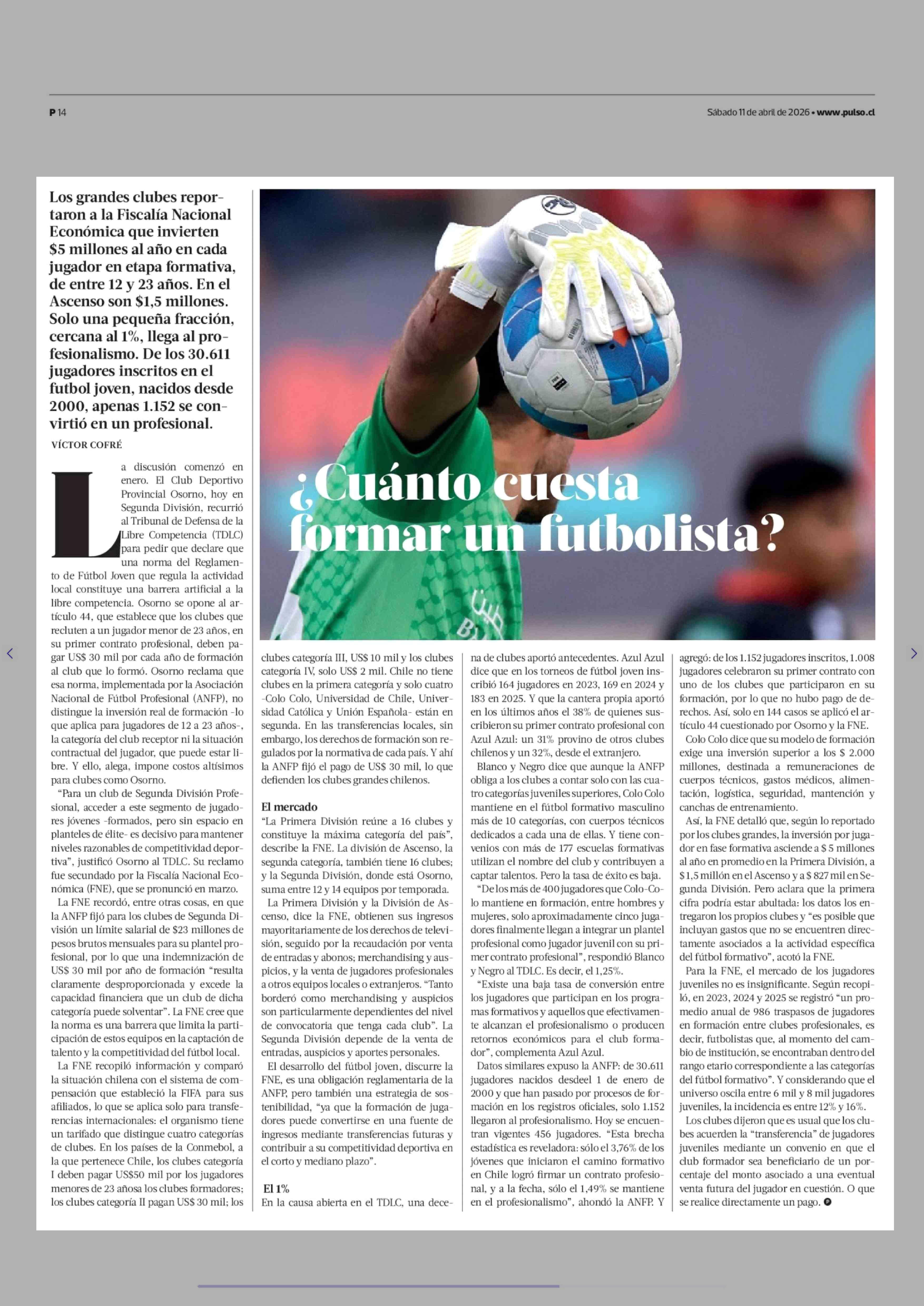 Cuánto cuesta formar un futbolista? 11-04-2026 La Tercera |