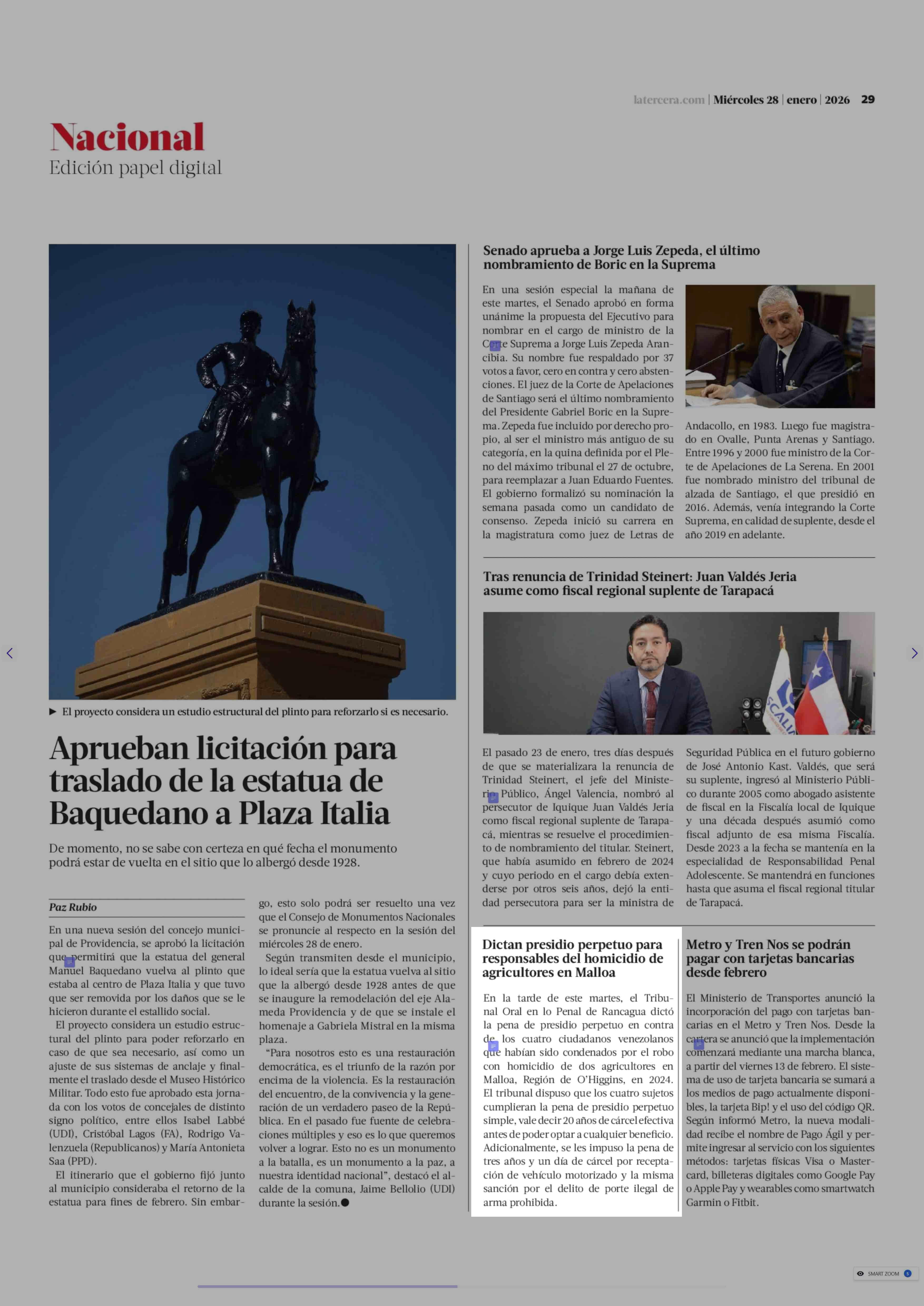 Dictan presidio perpetuo para responsables del homicidio de agricultores en Malloa 28-01-2026 La Tercera |