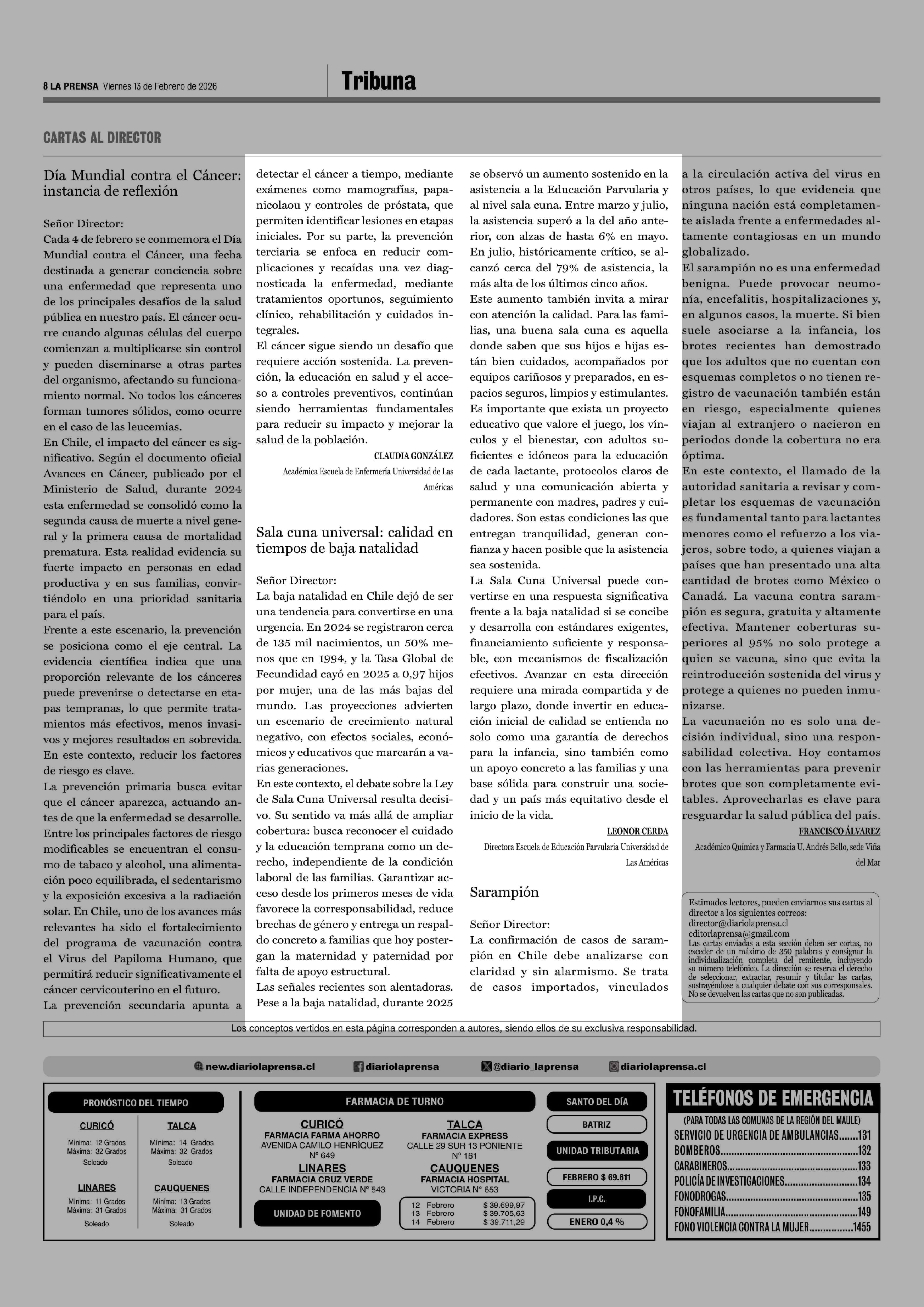 13-02-2026 La Prensa de Curicó