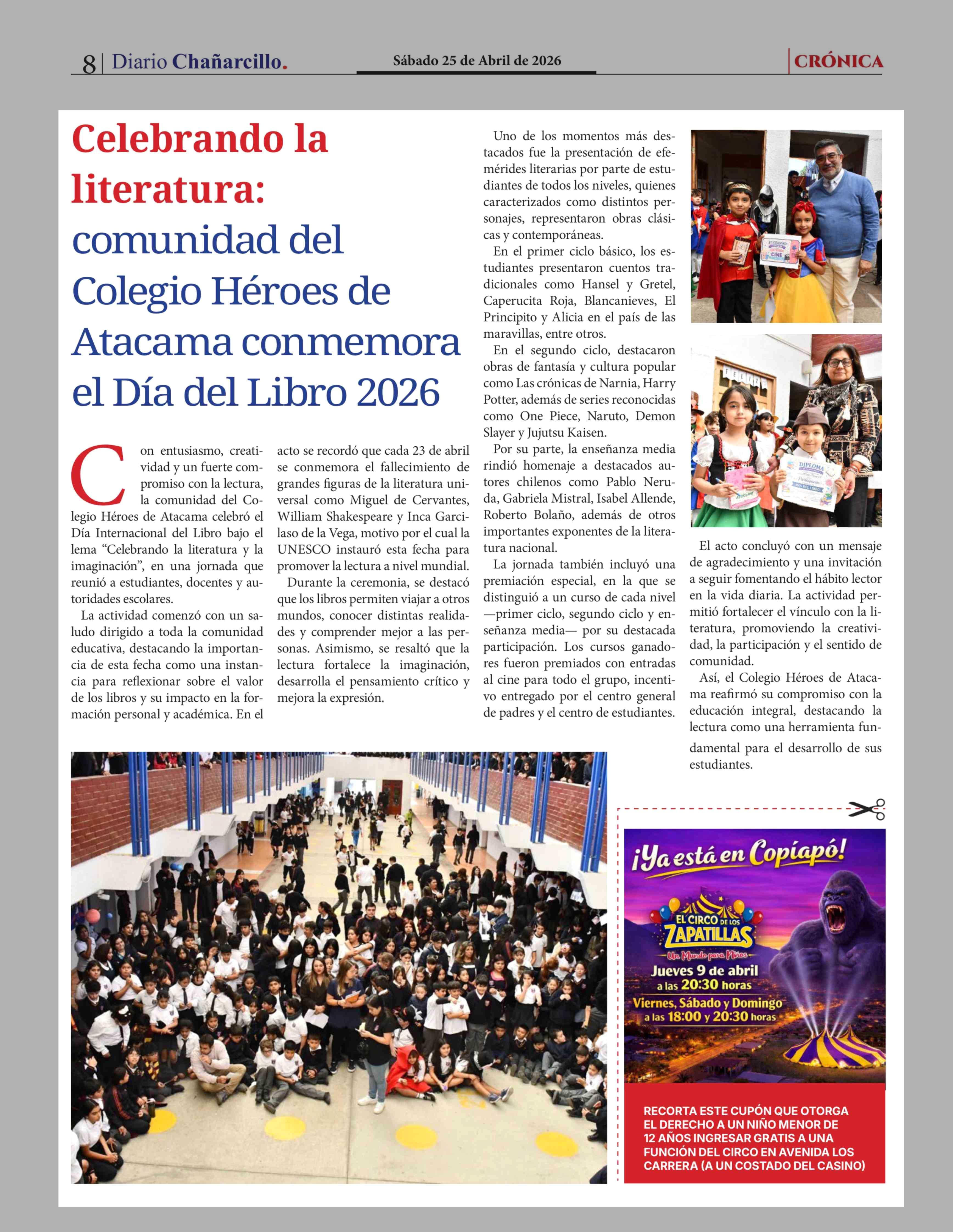 Celebrando la literatura: comunidad del Colegio Héroes de Atacama conmemora el Día del Libro 2026 25-04-2026 Diario Chañarcillo |