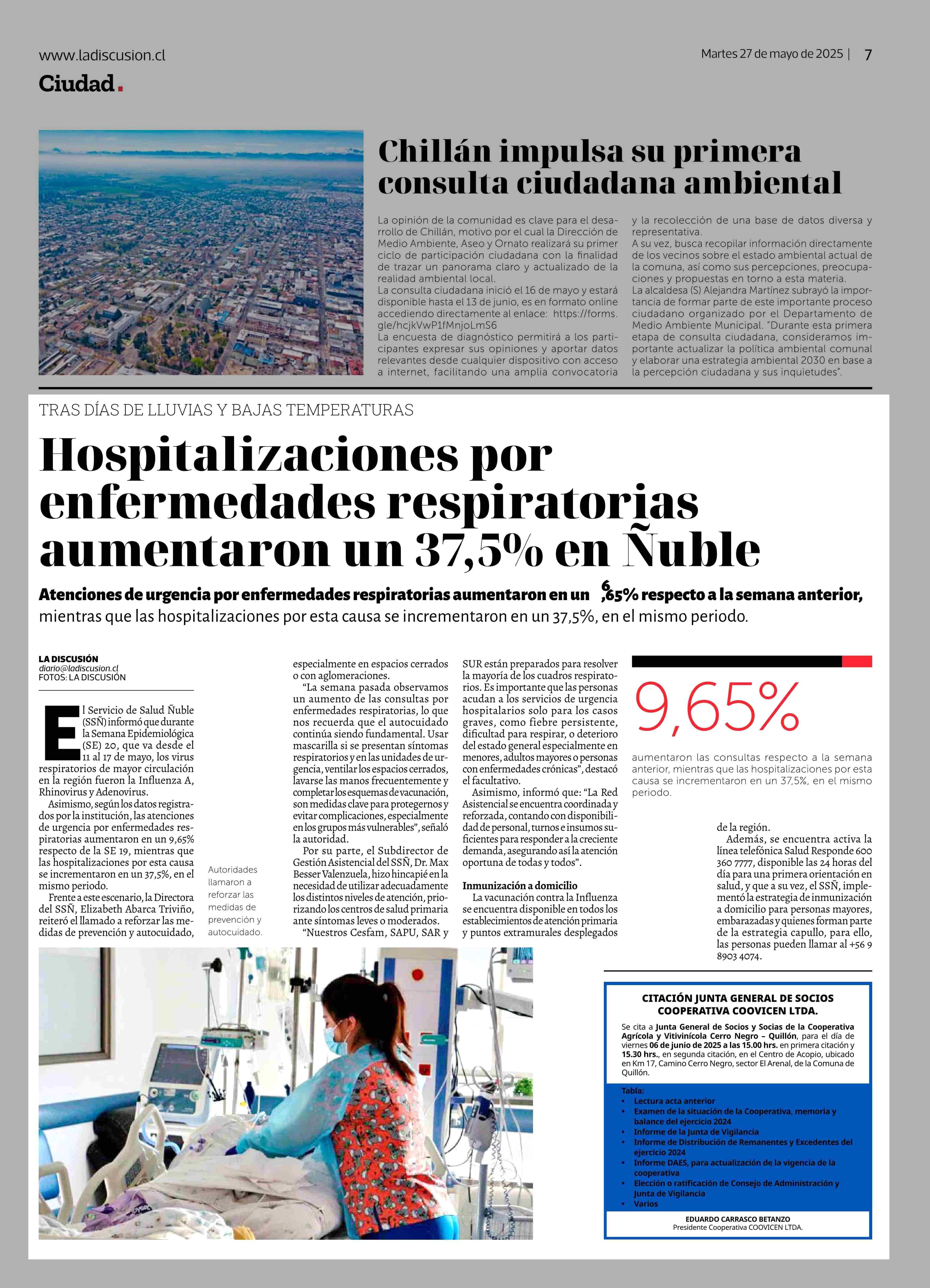 | Fecha: | 27-05-2025 | Sector: | Noticia general | Región: | Región del Ñuble |