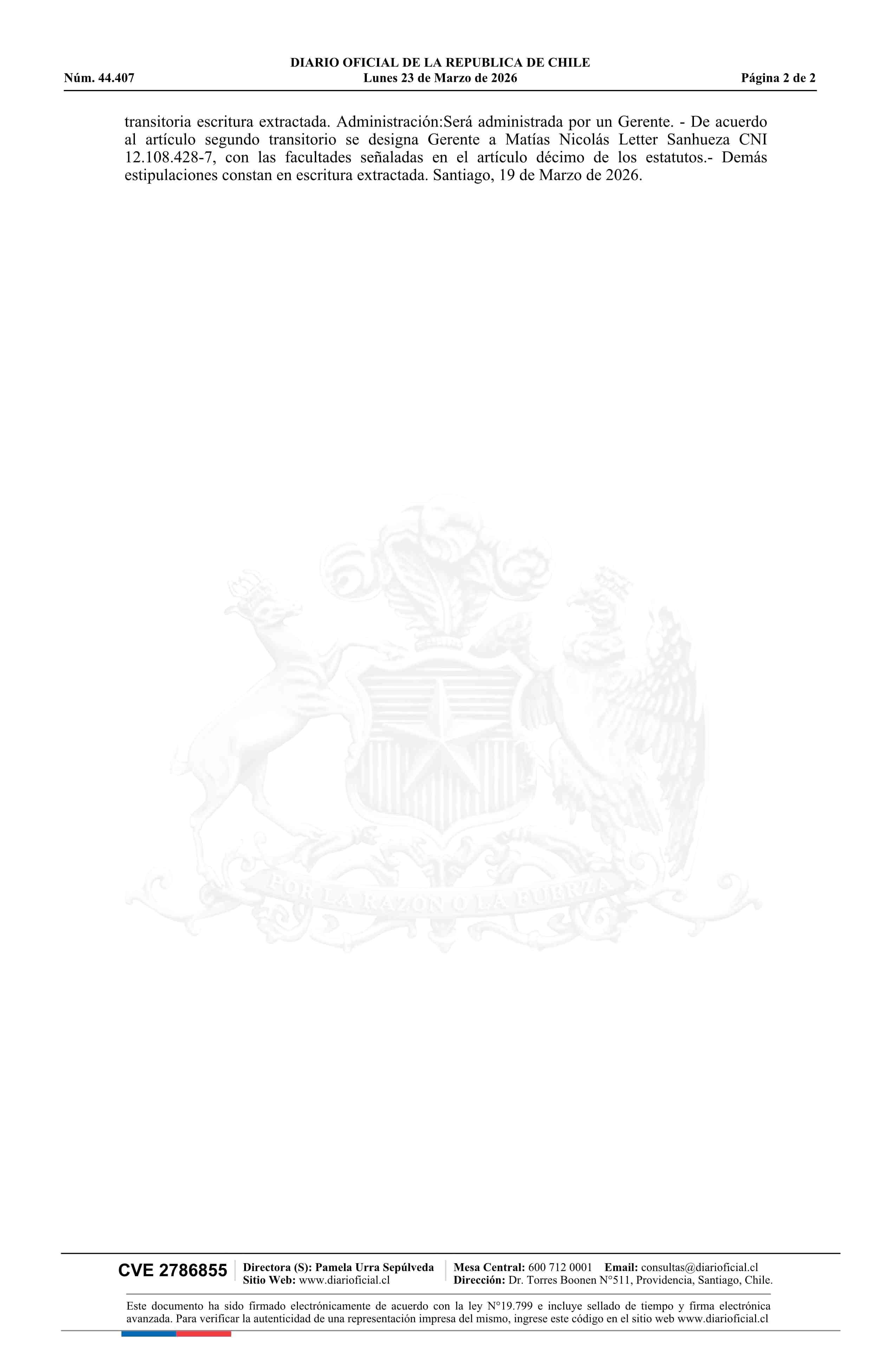 Inversiones Valle Dos SpA 23-03-2026 Diario Oficial Edición Electrónica |