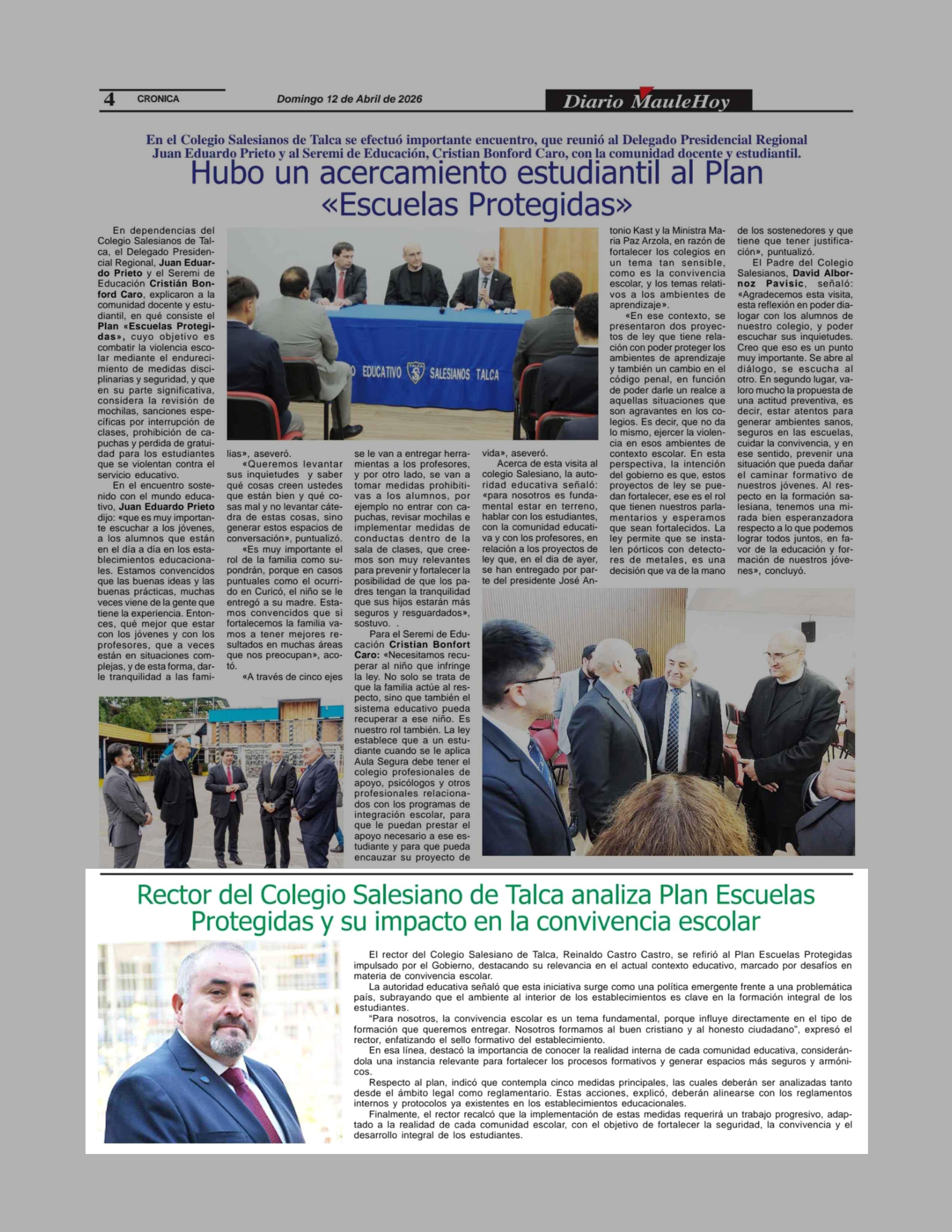 Título: Rector del Colegio Salesiano de Talca analiza Plan Escuelas Protegidas y su impacto en la convivencia escolar